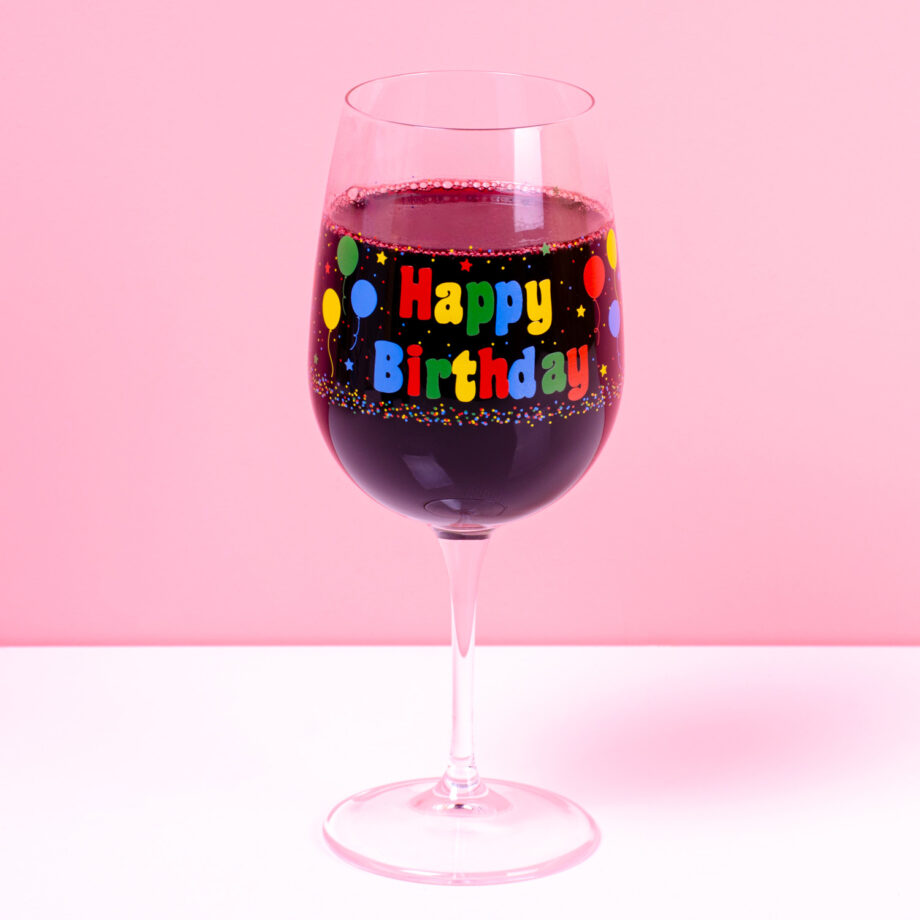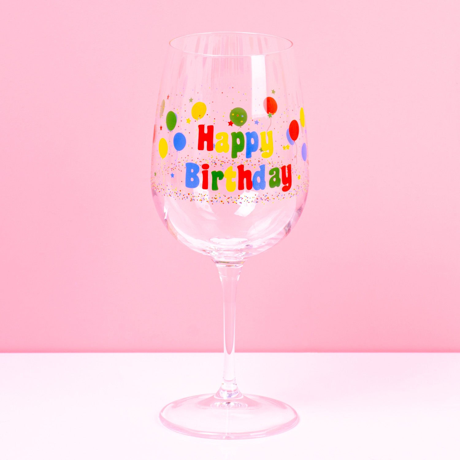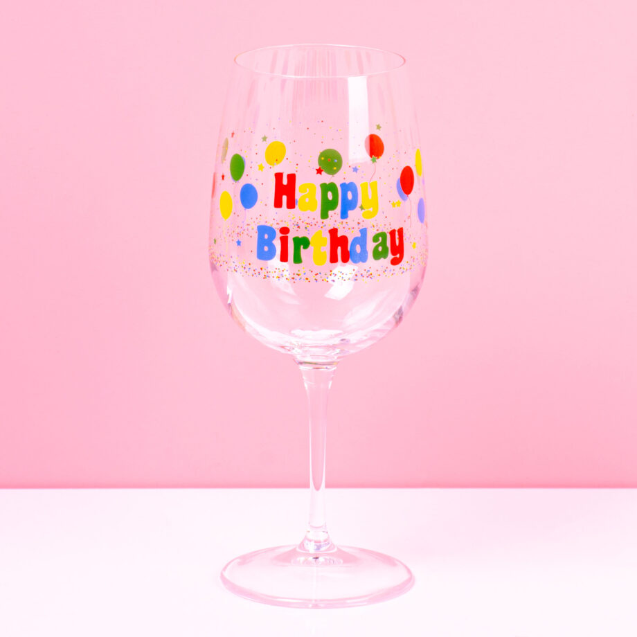 Het Happy Birthday wijnglas van Out of the Blue is een grappig en origineel cadeautje voor iedereen die dol is op wijn. Het wijnglas is versierd met ballonnen en de tekst Happy Birthday in kleurrijke letters. Zo ziet iedereen wie de jarige is!