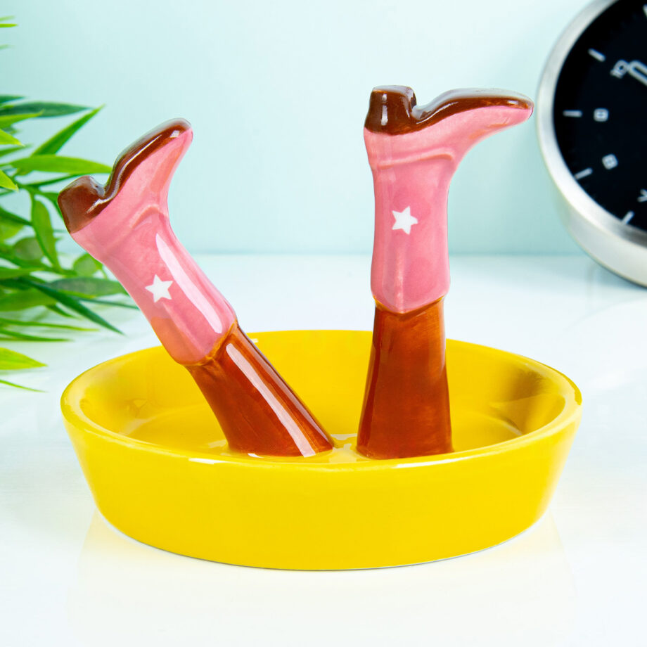 Moet jij altijd zoeken naar je favoriete sieraden? Dat is verleden tijd met het Happy Legs sieradenschaaltje van Balvi. Dit vrolijke sieradenschaaltje bestaat uit een schaaltje met twee benen die omhoog steken. De verschillende varianten zijn allemaal in een andere stemming: van het weekend met comfy sloffen aan tot een linedanceavond met cowboylaarzen aan. Welke past het beste bij jou?