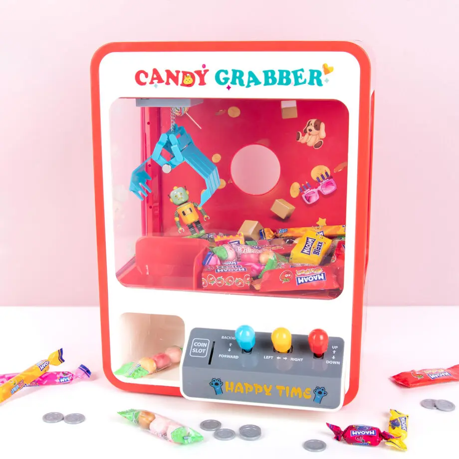 We kunnen niet beloven dat de ouders het leuk zullen vinden, maar als je hoge ogen wilt scoren bij een kind, dan geef je het de Happy Time snoepmachine cadeau. Deze originele snoepmachine is een kleine variant van de grijpautomaat die je ook op de kermis ziet. Met de joysticks positioneer je de arm zodat โie precies boven een snoepje hangt. Grijp het en breng hem naar het vakje, waar jij het kunt pakken. Een beurt duurt 60 seconden: daarna moet je opnieuw een plastic muntje in het automaat gooien.