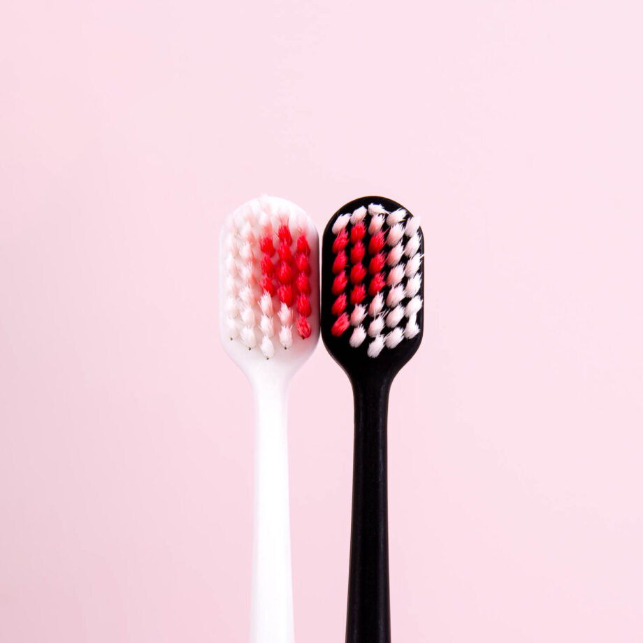 - De rode tandenborstelharen vormen samen een hartje