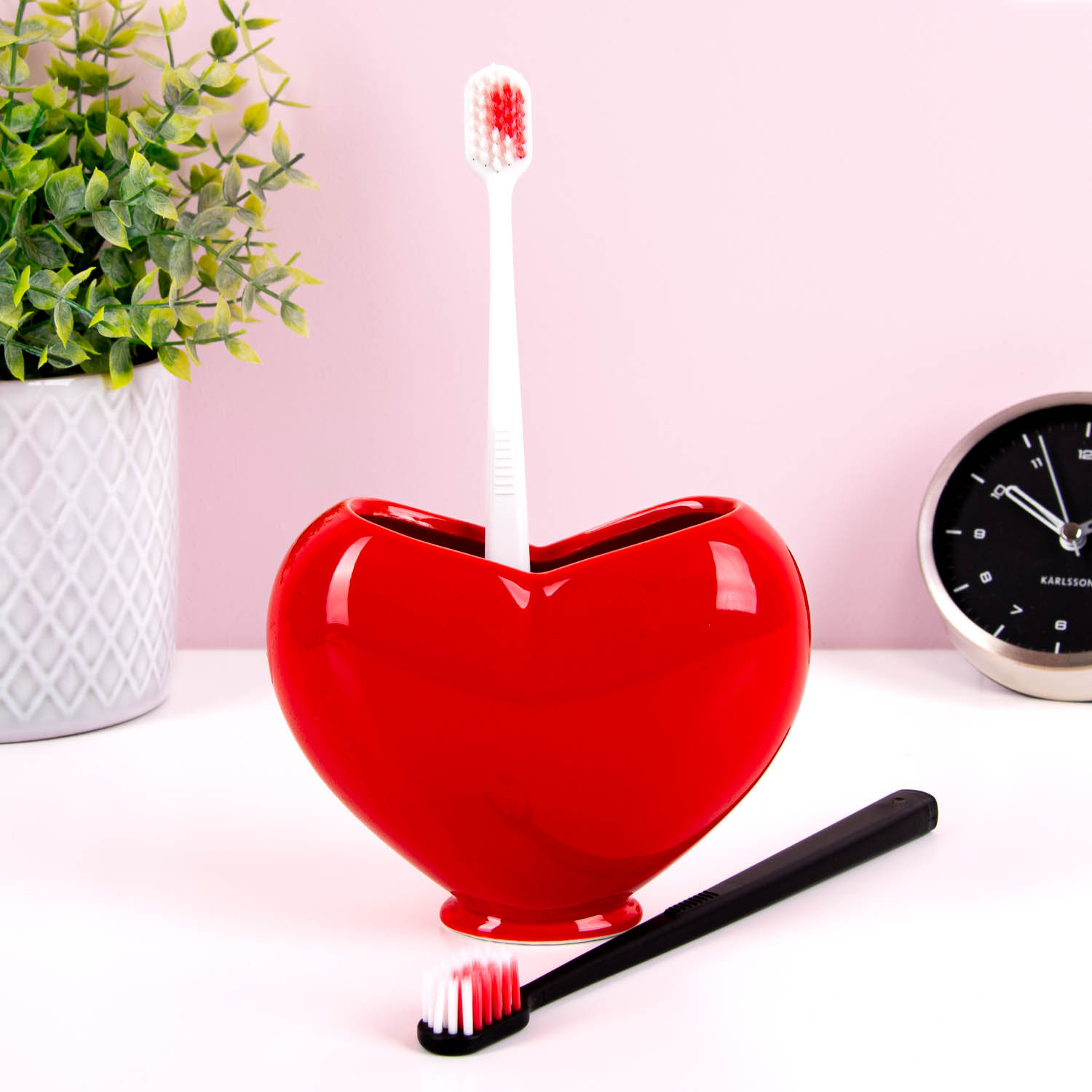Zoek je het perfecte housewarmingcadeau voor een stel dat gaat samenwonen? Of wil je je geliefde verrassen met een lief cadeautje? Kies voor de Hart tandenborstelset van MikaMax! Deze tandenborstelset bestaat uit twee tandenborstels, waarvan de rode haren samen een hartje vormen. Maar dat is niet alles: de tandenborstels staan ook knus samen in een hartvormige tandenborstelhouder. Als dat niet romantisch is…
