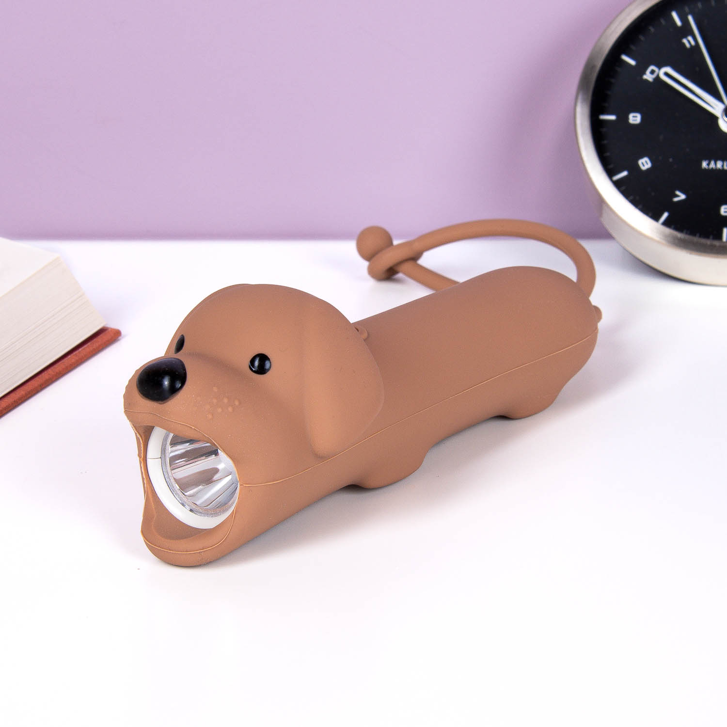 Ga veilig op pad met de Hond zaklamp van Winkee. Deze handzame zaklamp biedt twee lichtmodi en een lange batterijduur van ongeveer 12 uur. Inclusief draagkoord voor eenvoudig transport aan je tas. Perfect voor kids en outdoor-activiteiten.
