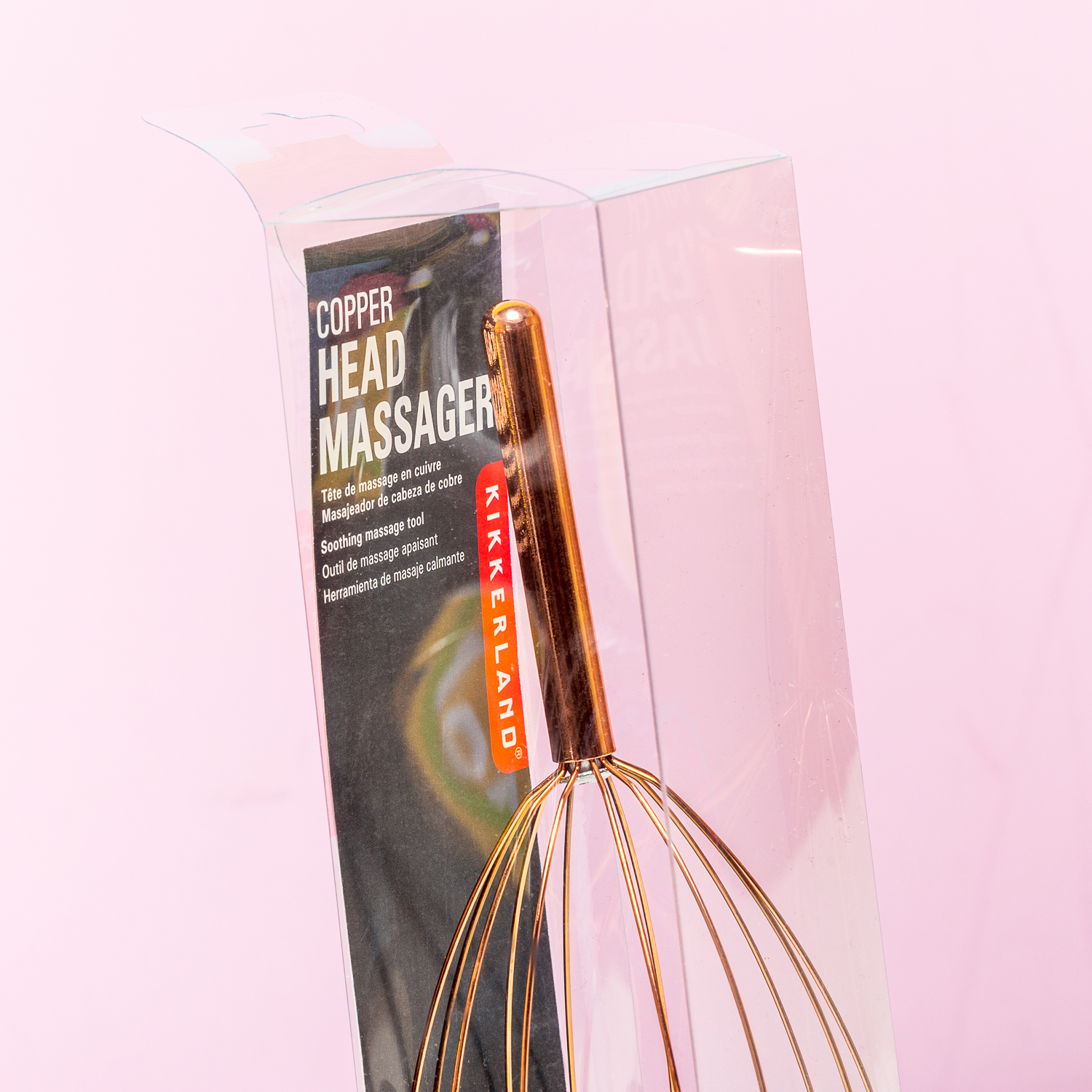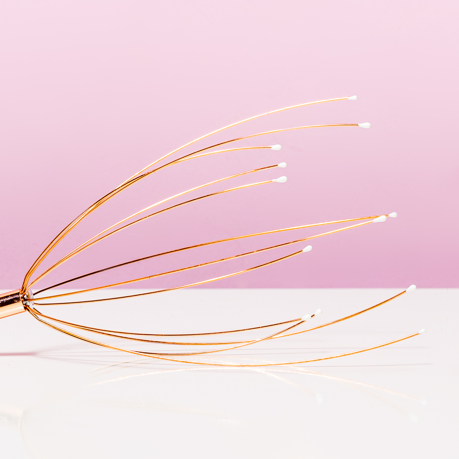 Heb je vaak last van spanningshoofdpijn? Een fijne hoofdhuidmassage kan dan helpen. En als je niemand in de buurt hebt om dat te doen, dan doe je dit lekker zelf met de Hoofdmassage spin koper van Kikkerland. Deze luxe massagespin is voorzien van flexibele pootjes. Aan de onderkant van de pootjes zitten witte bolletjes, die je zenuwuiteinden stimuleren. Je hoeft alleen maar de massage spin op je schedel te zetten en langzaam naar beneden te duwen. Voel je je spieren al ontspannen?