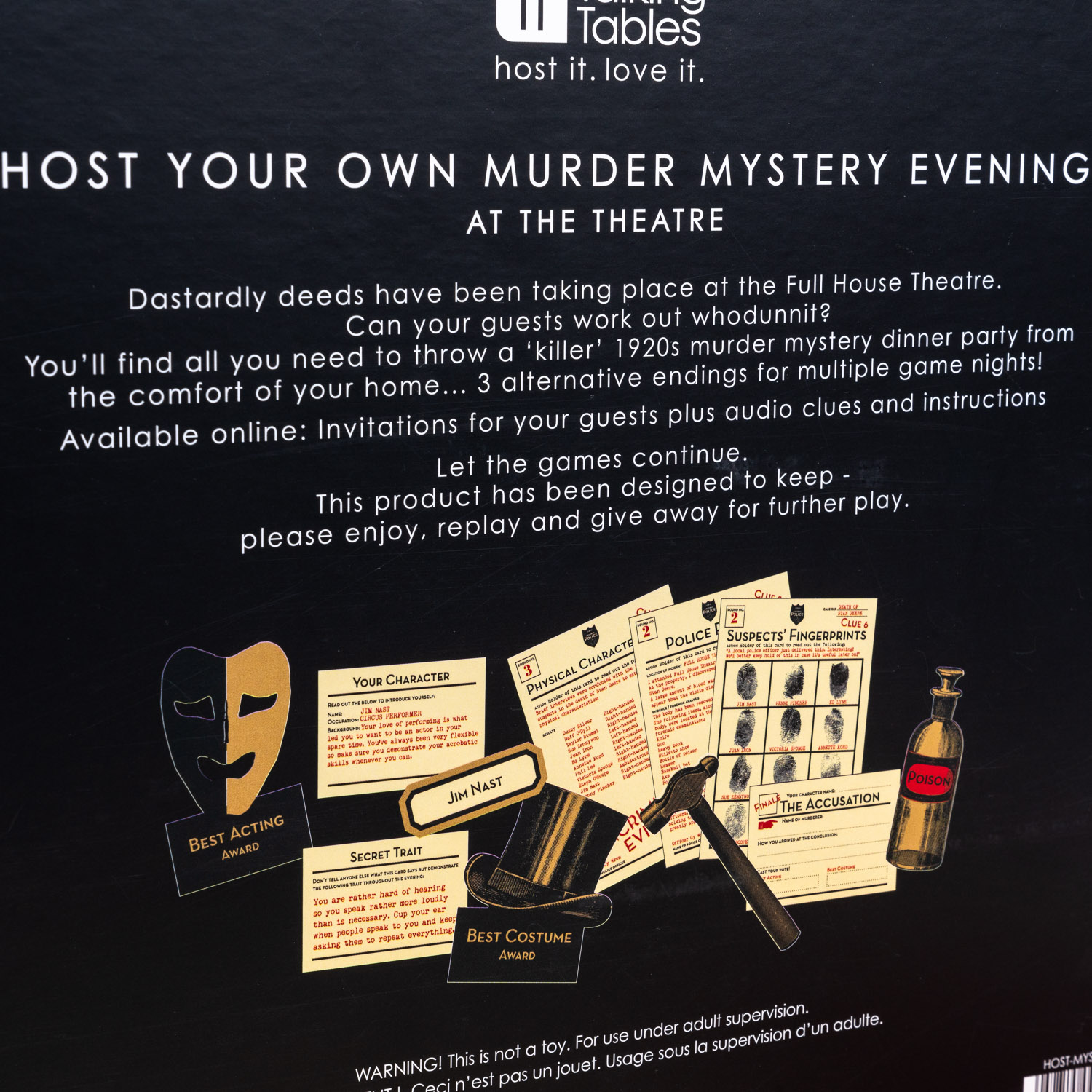 Voor iedereen die geniet van Wie is de Mol en Cluedo hebben we iets leuks: het Host Your Own Murder Mystery spel van Talking Tables. Bij dit moordmysterie is het de bedoeling dat jij raadt wie de moordenaar is. Dat doe je onder andere aan de hand van tips die je van de host krijgt. Het spel komt met allerlei onderdelen, zoals detective notitieboekjes, moordwapens, een politiedossier en awards.