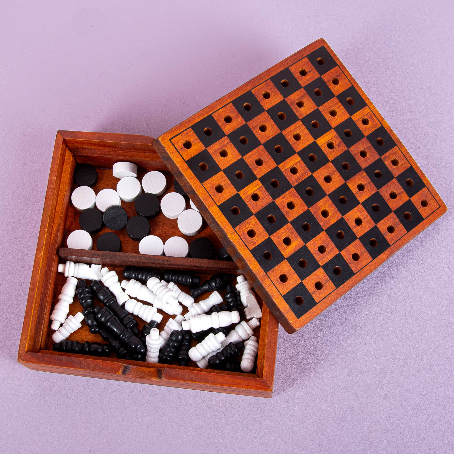 Kies voor luxe speelplezier, met het Houten dam- en schaakspel van Iron & Glory. Je kunt het thuis én onderweg gebruiken, want dit compacte spel bestaat uit een houten verpakking, met daarin schaak en damstukken. Het deksel is tegelijkertijd het speelveld, waar je de schaakstukken in kunt steken. Een mooi cadeau, dat ook prachtig staat op je bureau.