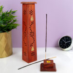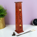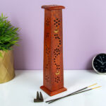 Begin jij de dag graag mindful, met yoga en het roken van wierook? Of zoek je een origineel cadeautje voor iemand die graag een stokje wierook aansteekt? Geef die persoon deze Houten wierookhouder cadeau. De houder is gemaakt van massief hout en heeft allemaal uitgesneden figuren die ervoor zorgen dat de geur van de wierook kan ontsnappen. De ingelegde figuurtjes van koper hebben een spirituele betekenis.