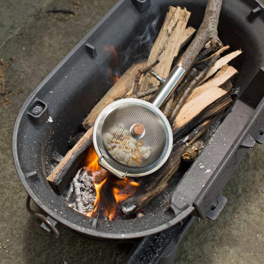 Altijd gedacht dat marshmallows de enige kampeersnacks zijn? Met de Huckleberry popcornmaker bak jij met gemak de lekkerste popcorn in het kampvuur. Je kunt hem ook gebruiken boven de barbecue of vuurkorf. Bevestig de popcornmaker van Kikkerland aan een stok, zo kun jij genoeg afstand van het vuur houden. De pan is compact en licht, waardoor ook kinderen hem met plezier gebruiken. Kampvuur aan, een handje pofmaรฏs in de pan en poppen maar.