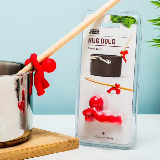 Maar Doug is niet alleen perfect voor in pannen, maar ook voor op het aanrecht. Je wilt namelijk niet dat je lepel vies wordt of dat de lepel van je aanrecht een kliederboel maakt. Wie kan er wel een Hug Doug in de keuken gebruiken?