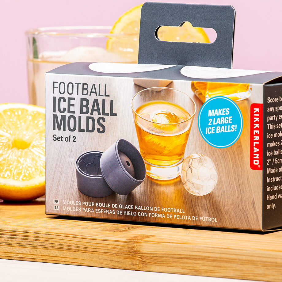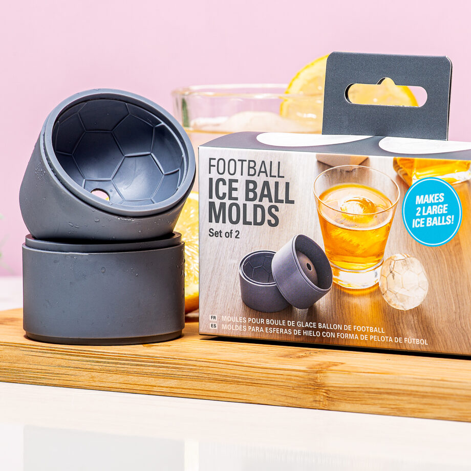 Heb je een cadeautje nodig voor mensen die liever met een drankje sport kijken dan zelf sporten? De IJsbal vorm (set van 2) van Kikkerland is hier perfect voor! Deze grappige mallen maken golfballen of voetballen van ijs, waarmee je je drankje kunt koelen. De mal vul je aan de bovenkant met water en zet je in de diepvries. Na een paar uur heb je twee ijsballen die eruit zien als een voetbal of een golfbal.