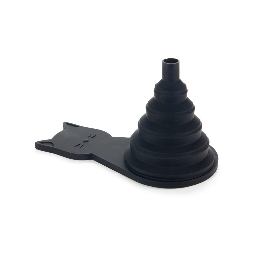 Meow! De Inklapbare kat trechter van Balvi is een inklapbare trechter in de vorm van een kattensilhouet met opgeheven details op de neus en snorharen. Hij is inklapbaar en compact, dus ideaal voor het morsloos overschenken van vloeistoffen zonder dat hij veel ruimte inneemt. Met magneet aan de achterkant kun je hem op de koelkast of elk metalen oppervlak hangen. Een handig cadeau voor kattenliefhebbers!