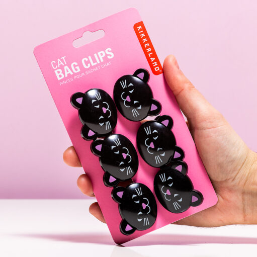 Sloffe koekjes of zakken rijst die per ongeluk open gaan zijn verleden tijd met de Kat bag clips van Kikkerland. Deze leuke clips in de vorm van een poezenkop houden zakken stevig dichtgeknepen. De clips komen in een set van 6, dus voldoende voor chips, suiker, koffie en andere zakken die je dicht wilt houden. Je kunt kiezen uit de gekleurde set waarbij elke bag clip een ander design heeft of een set van zes zwarte katten. Een leuk cadeautje voor iedereen die dol is op katten!