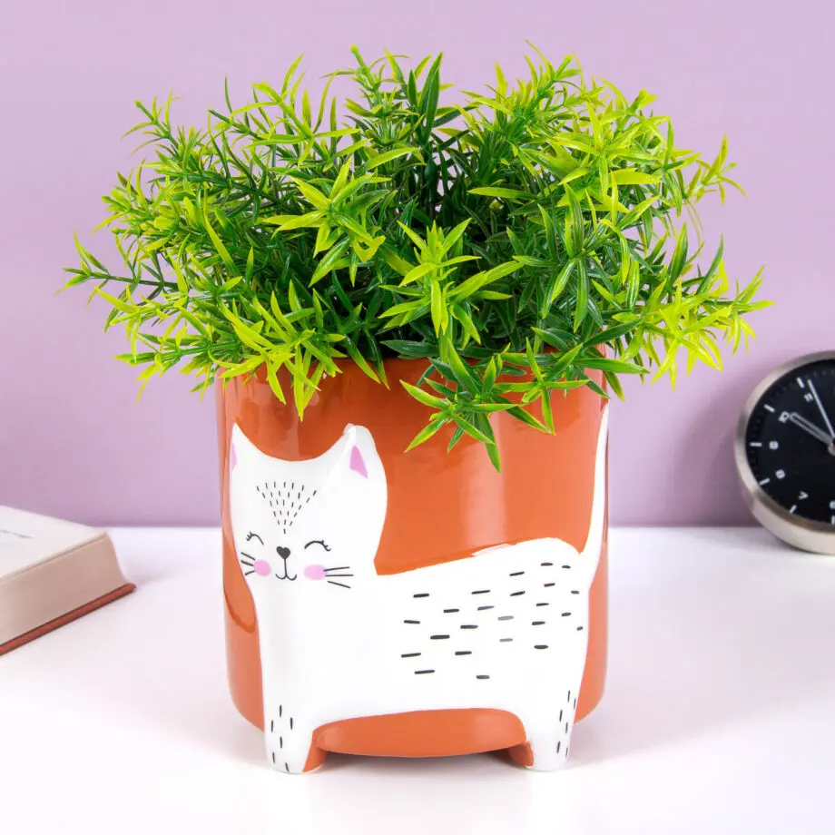 • Bloempot met kat-decoratie