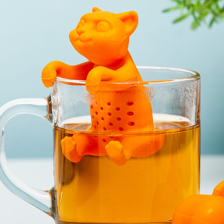 Katten bang voor water? Niet de Kat tea infuser van Winkee! Sterker nog: deze kat hangt het liefst met zijn onderlijf in jouw theemok. Voor de lekkerste thee vul je de thee infuser met losse thee en hang je hem een paar minuten aan zijn voorpoten aan de rand van je theeglas.