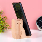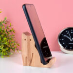 Houten smartphonehouder die lijkt op een kat van Kikkerland