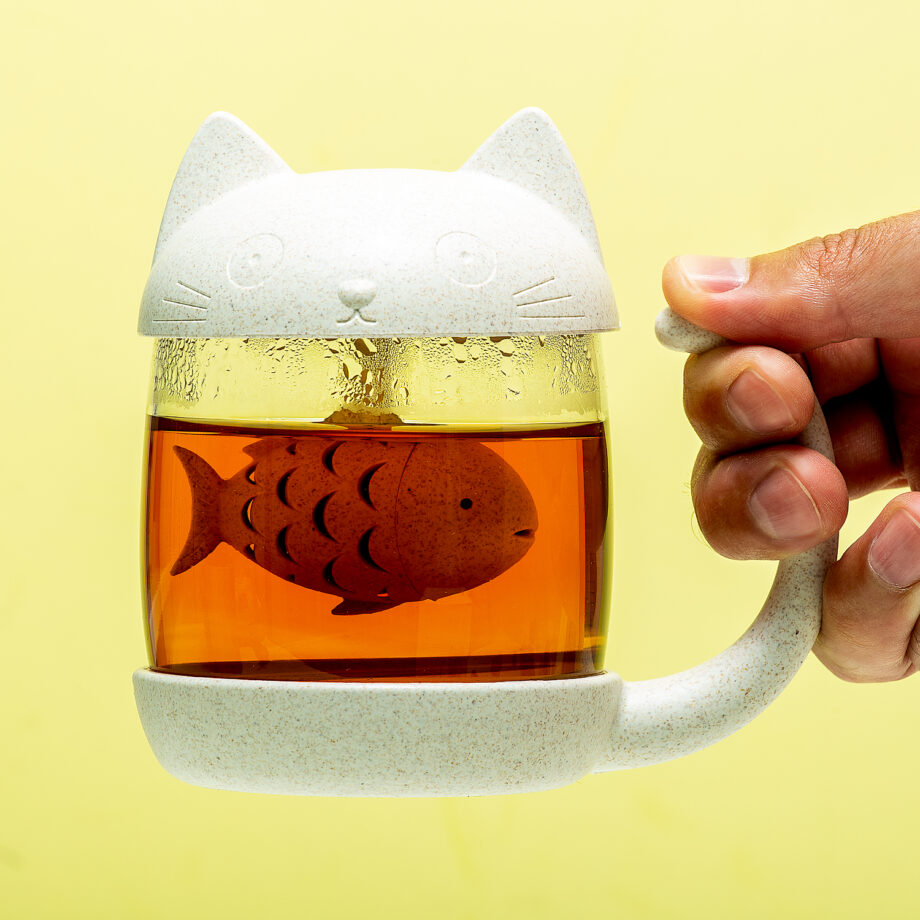 Vergeet thee zetten met gewone zakjes: jij doet het liever goed. Met losse thee in een thee ei dus. Maar graag wel een beetje op een leuke manier. Met de Kat theekop met infuser van Winkee maak je thee op een originele en grappige manier. De kop van de kat heeft een thee infuser in de vorm van een vis aan de onderkant. Deze vul je met thee en hang je in het hete water. Na een paar minuten is je thee klaar. Super grappig om aan je vriendinnen te geven als ze op de thee komen.