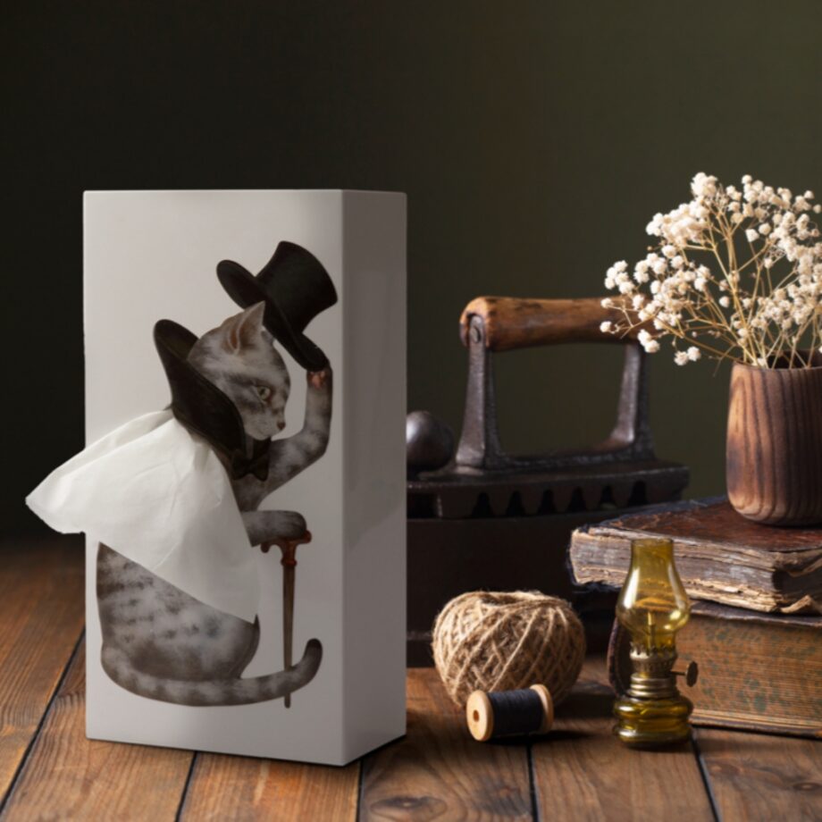 Wil je je tissues in stijl bewaren? De Kat tissuehouder van Spextrum is een tissuehouder met de opdruk van een galante kat met wandelstok, hoed en cape. Het leuke? Als je er tissues in doet, wordt de cape wit door de tissues! Perfect voor op je bureau, nachtkastje of salontafel. Een stijlvol cadeau voor kattenliefhebbers!
