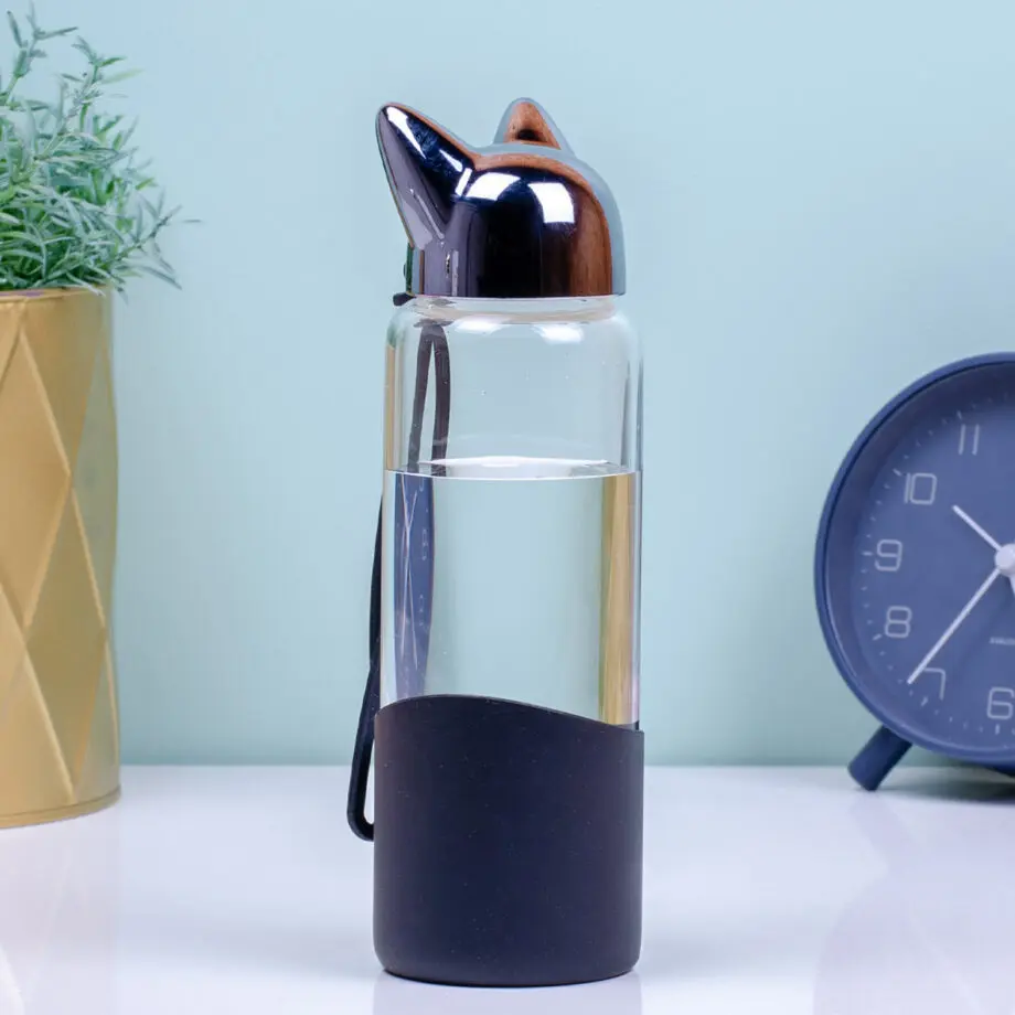 Zijn katten en poezen je lust en je leven? Dan past de Kat waterfles van Balvi perfect bij jou! Deze leuke fles vul je met water en kun je onderweg meenemen. Zo hoef je geen onnodig geld uit te geven aan plastic flesjes water. Dat is nog veel beter voor het milieu ook! De waterfles is gemaakt van boriumsilicaat glas: een glassoort die steviger is dan regulier glas. De fles van Balvi met kattenoortjes is leverbaar in het roze met goud of in het zwart met zilver. Aan de onderkant zit een siliconen deel, dat ervoor zorgt dat de fles niet uit je handen kan glippen. Met de lus neem je hem ook makkelijk mee.