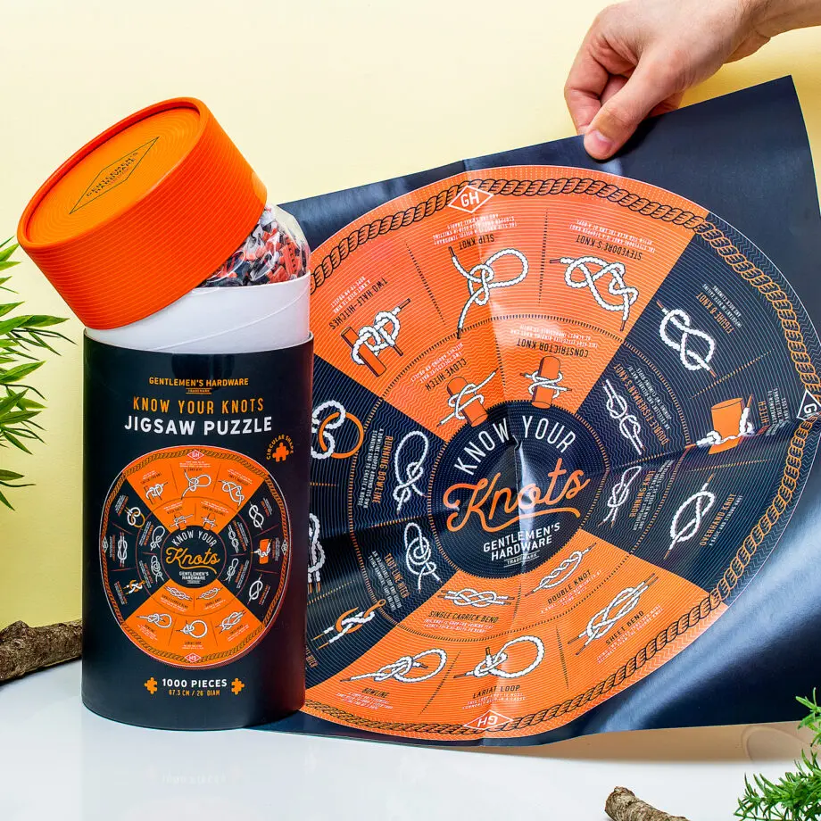 Knopen leren: misschien is het iets wat je leuk vindt of iets wat je moet doen voor de scouting. Hoe dan ook: met de Knopen puzzel (1000) van Gentlemenโs Hardware wordt het makkelijker. Op deze puzzel staan namelijk twintig belangrijke knopen die je onder andere gebruikt tijdens het zeilen of kamperen. De ronde puzzel bestaat uit duizend stukjes en tegen de tijd dat je die in elkaar hebt gelegd, ken je alle knopen ook. Zo niet, dan hang je de poster op die hetzelfde design heeft.