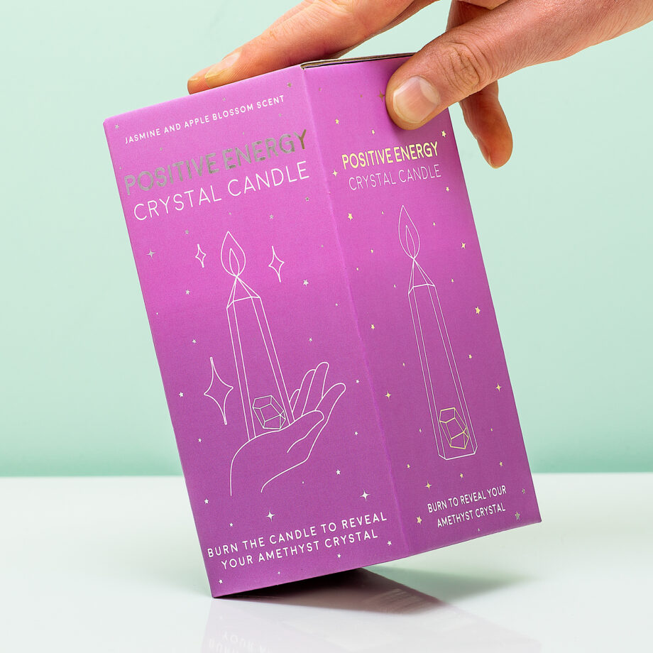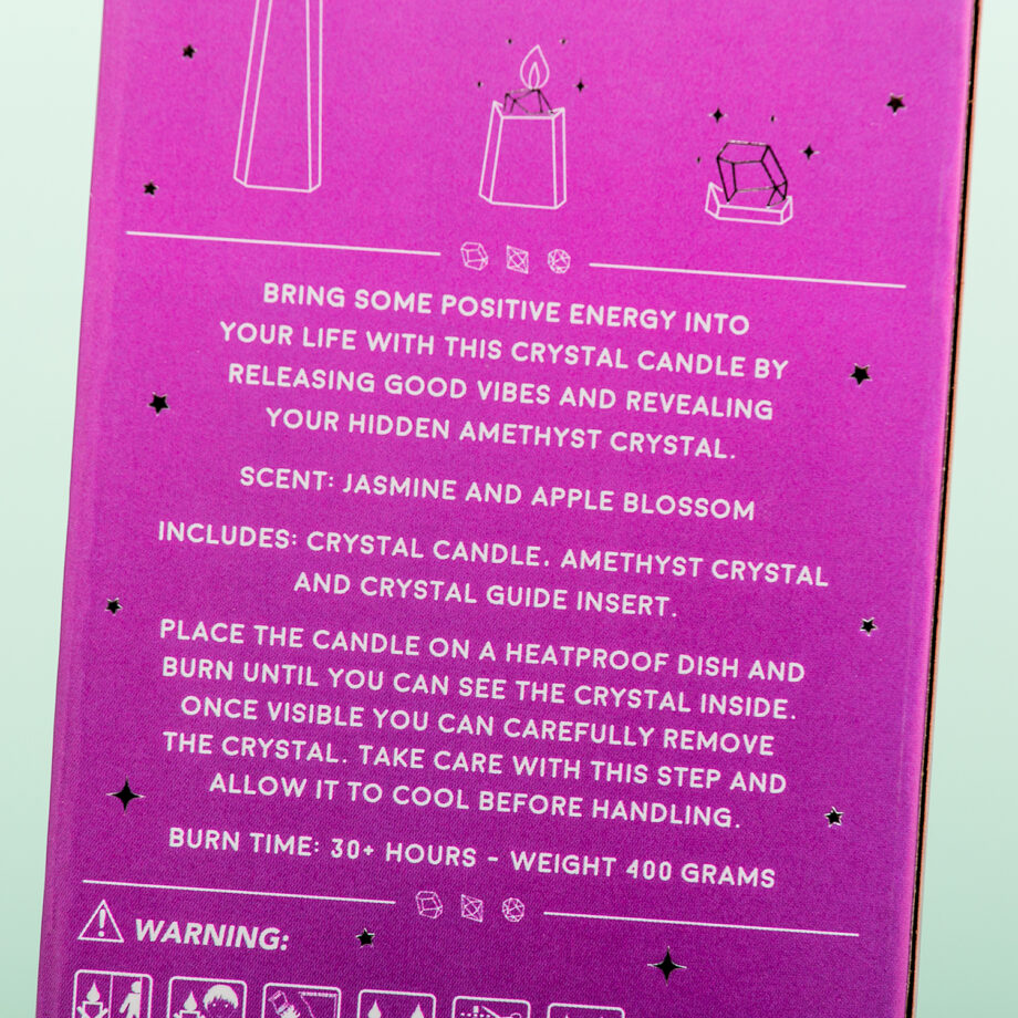 Zoek jij een uniek cadeautje voor iemand die wel wat positieve energie kan gebruiken, omdat diegene door een moeilijke tijd gaat? Wens iemand kracht en positieve energie toe met de Kristalvormige kaars met amethist van Gift Republic toe. Deze mooie paarse kaars heeft de vorm van een kristal en de geur van jasmijn en appelbloesem. Maar dat is niet alles: als je de kaars brandt dan komt er een amethist tevoorschijn. In het bijbehorende boekje lees je hoe het kristal op een positieve manier voor jou kan werken.