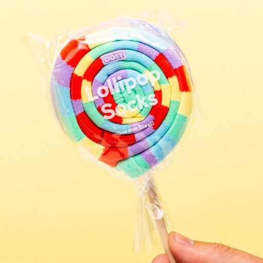 Werd jij als kind ook zo blij van de kermis? Omdat je daar in de leukste attracties mocht, maar ook ziek mocht eten aan zuurstokken, suikerspinnen en van die grote ronde lollies? Daar zijn de Lollipop sokken van DOIY op geïnspireerd. Deze originele sokken zien er in de verpakking uit als een lolly. In werkelijkheid zijn het vrolijk gestreepte sokken, geschikt voor maat 36 – 46. Een ideaal cadeautje, want iedereen heeft sokken nodig!