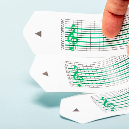 - Door gaatjes te maken in de stroken papier, creƫer je een liedje