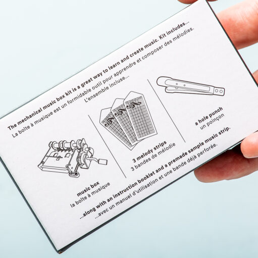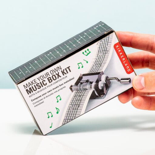 Heb je altijd al je eigen muziek willen maken? Creƫer de leukste melodieƫn met de Maak je eigen muziekdoosje set van Kikkerland. Dit ouderwetse muziekdoosje is speciaal ontworpen om zelf muziek bij te maken. In de set zitten namelijk lege stroken papier en een gaatjesmaker. Maak gaatjes in een papieren strook, stop deze vervolgens in het muziekdoosje en je kunt naar je eigen muziek luisteren! In de verpakking zit alles wat je nodig hebt, inclusief een duidelijke instructie, zodat het kinderspel wordt om je eigen muziek te maken.