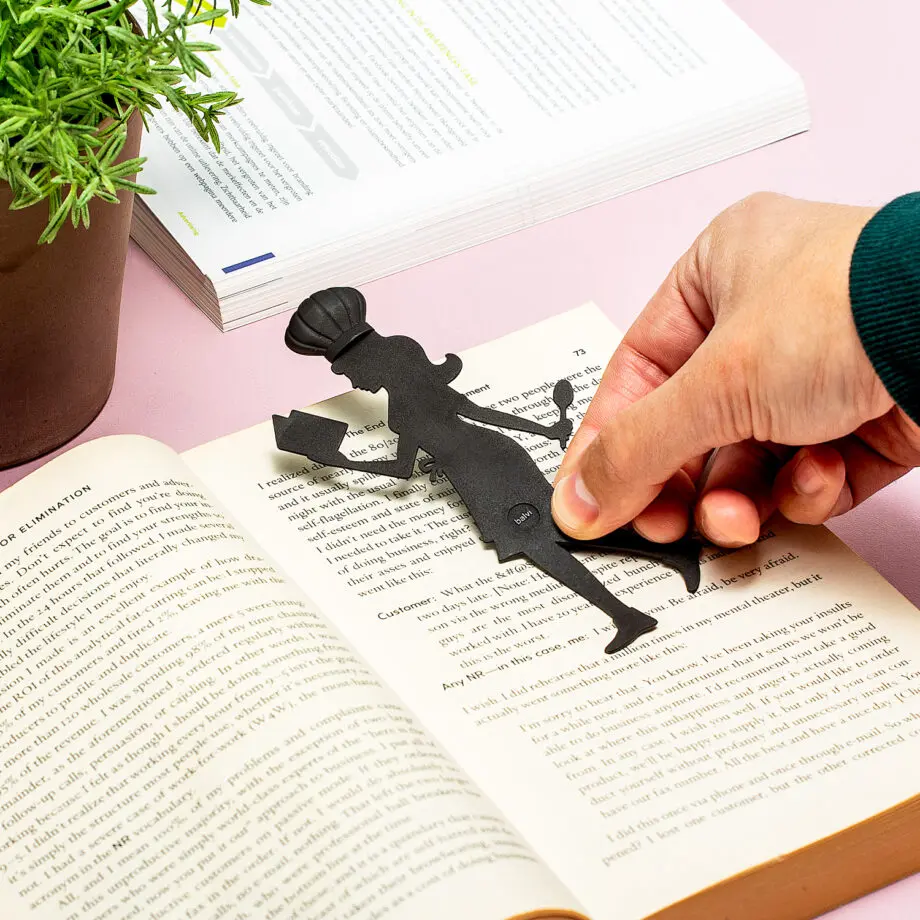 - Boekenlegger die eruit ziet als een bakker die een kookboek leest