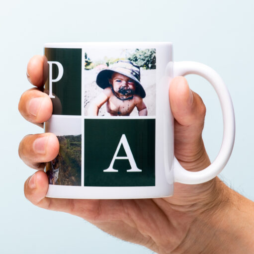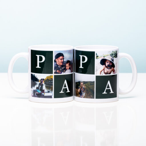 Vaderdag, de verjaardag van je pa of gewoon zomaar: verras je pa met de Gepersonaliseerde fotomok PAPA. Deze leuke beker is voorzien van acht vakken: vier met de letters die samen PAPA vormen en vier vakken voor foto’s van jouw vader of van jullie samen. Zet er bijvoorbeeld vakantiefoto’s op, dan denkt je pa elke keer als hij de koffiemok gebruikt terug aan jullie mooie avonturen. Fijn detail: de mok kan gewoon in de vaatwasser.