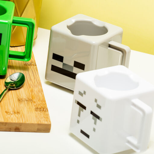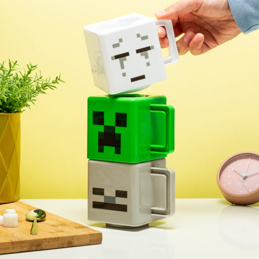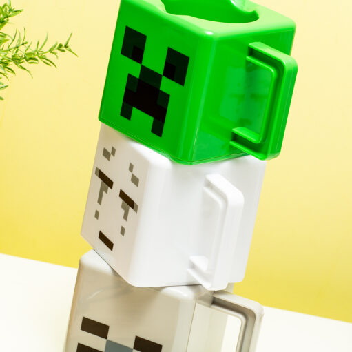 Een Creeper, Skeleton en Ghast: samen vormen ze een hostile mob… in je keukenkastje! Het zijn namelijk niet zomaar Minecraft-figuren, maar mokken! De Stapelbare mokken (set van 3) van Minecraft zullen het goed doen bij elk kind én hun vriendjes. De bekers zijn speciaal ontworpen voor kleine fans van de game: ze hebben een speciale rand waardoor goed uit de mok gedronken kan worden en ze zijn gemaakt van plastic.