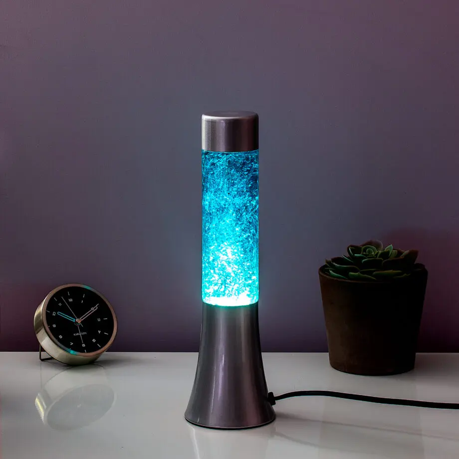 Geen zin om te studeren? Is je woonkamer maar ongezellig? Onthoud รฉรฉn ding: met glitters wordt alles beter. Daarom is er de Mini lavalamp met glitters van Fisura. Deze vrolijke lavalamp bevat geen lava, maar glitters! Deze zweven door de vloeistof als je de lamp inschakelt. Door zijn kleinere formaat is het een perfect bureauaccessoire, maar hij is ook heel geschikt voor in woonruimtes die niet zo groot zijn.