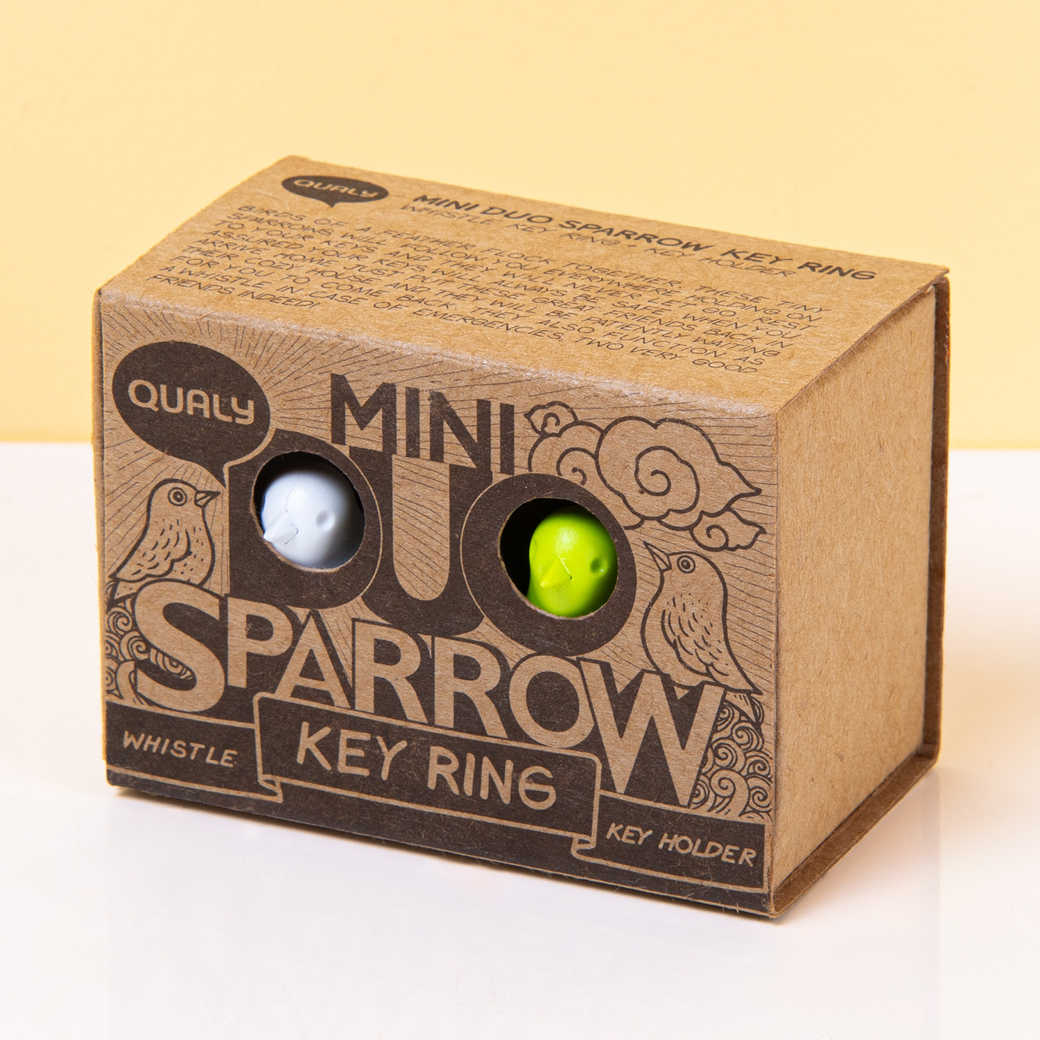 De Mini Sparrow Duo sleutelhanger van Qualy is speciaal ontworpen voor warhoofden die altijd hun sleutels kwijt zijn. Je hangt het vogelhuisje aan de muur in de gang en doet je sleutels aan één van de vogeltjes. Elke keer als je thuiskomt, zet je direct het vogeltje terug op zijn plek in het huisje. Ga je weer weg, dan word je door de vogels eraan herinnerd om je sleutels mee te nemen. Nu kom je nooit meer te laat aan op je werk omdat je weer eens je sleutels moest zoeken.