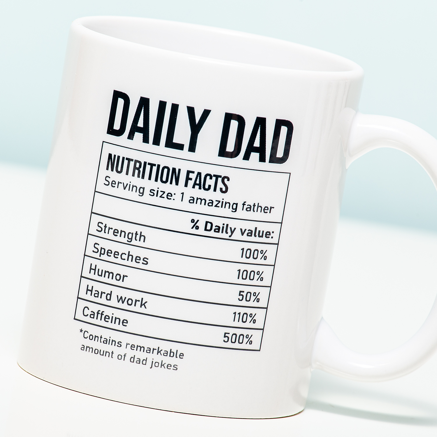 • Met de tekst: Daily Dad nutrition facts for 1 amazing father