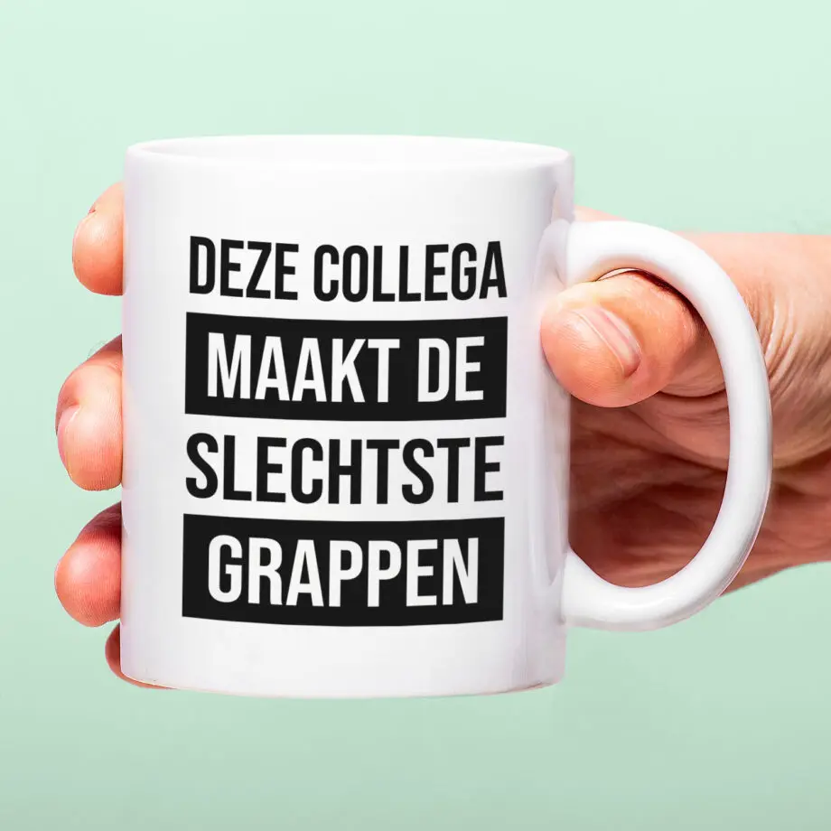 - Beker met de tekst: Deze collega maakt de slechtste grappen