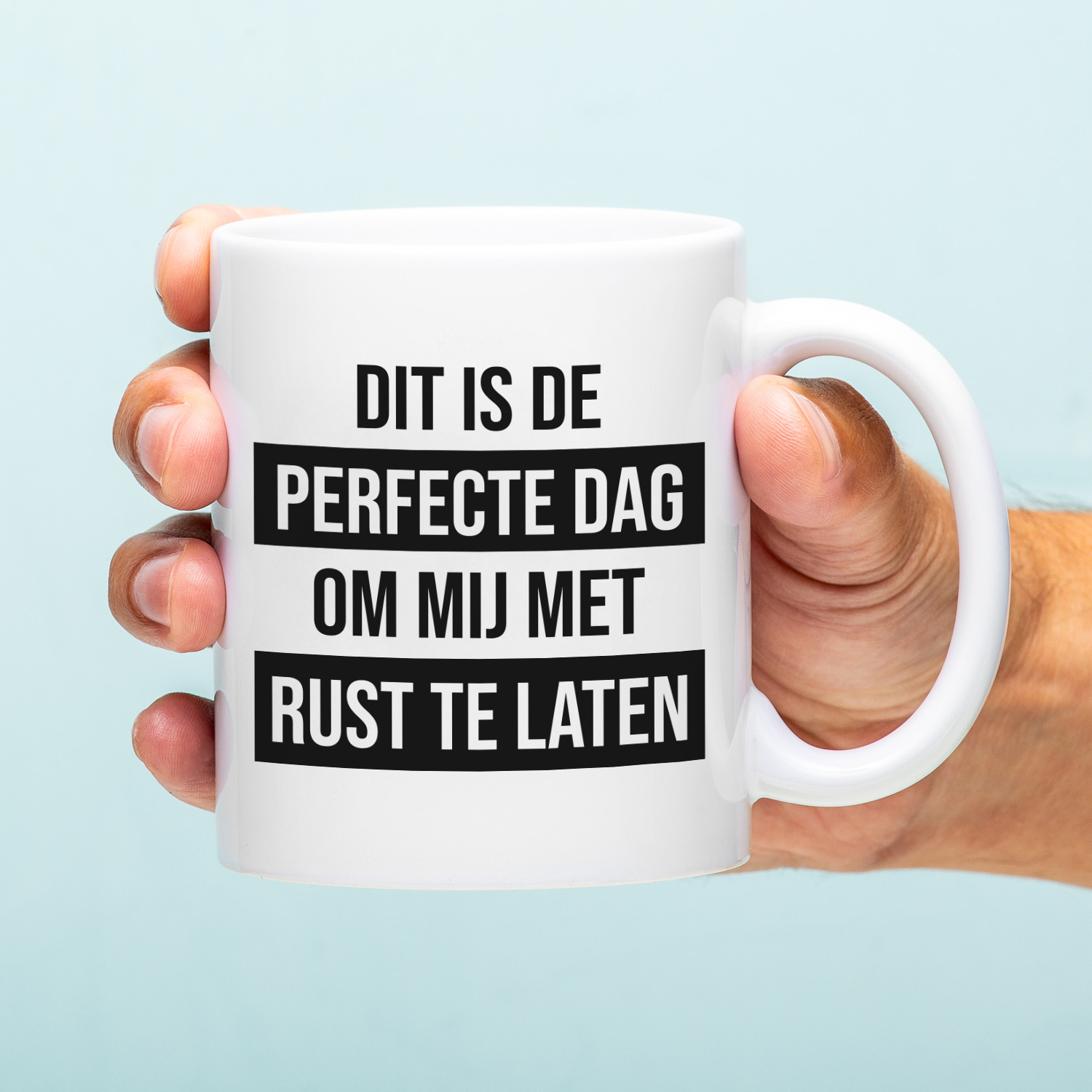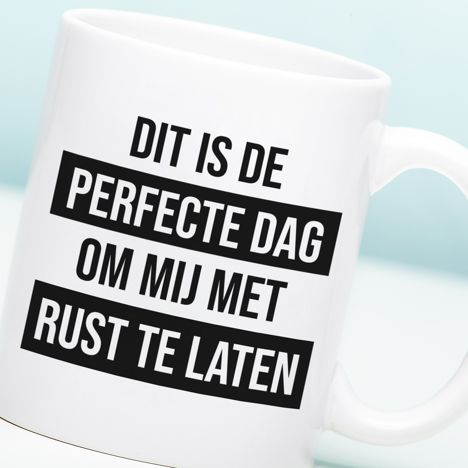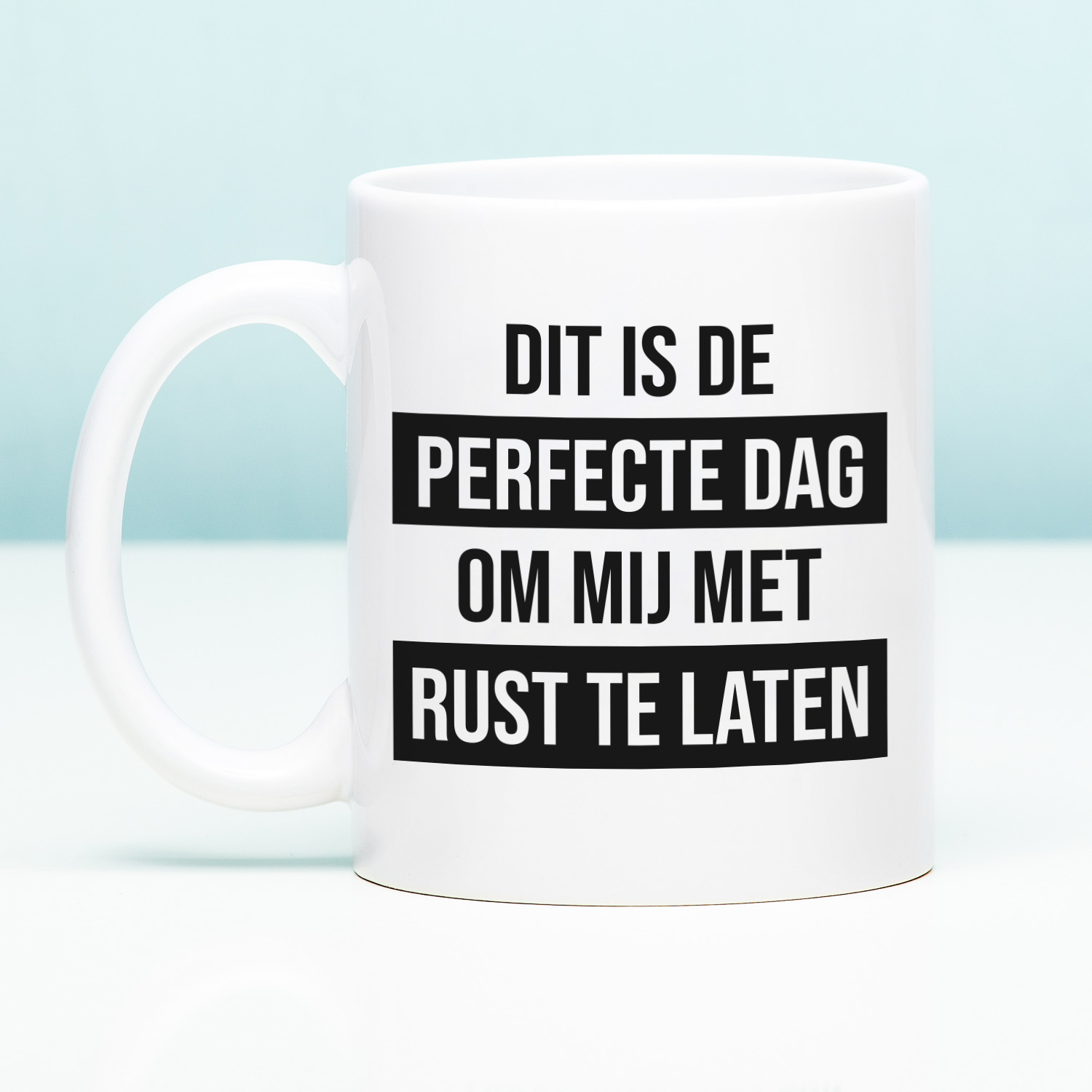 De Mok Dit is de perfecte dag om mij met rust te laten is hรฉt cadeau voor mensen die niet op hun mond gevallen zijn. Een koffiemok die met humor je stemming laat zien.