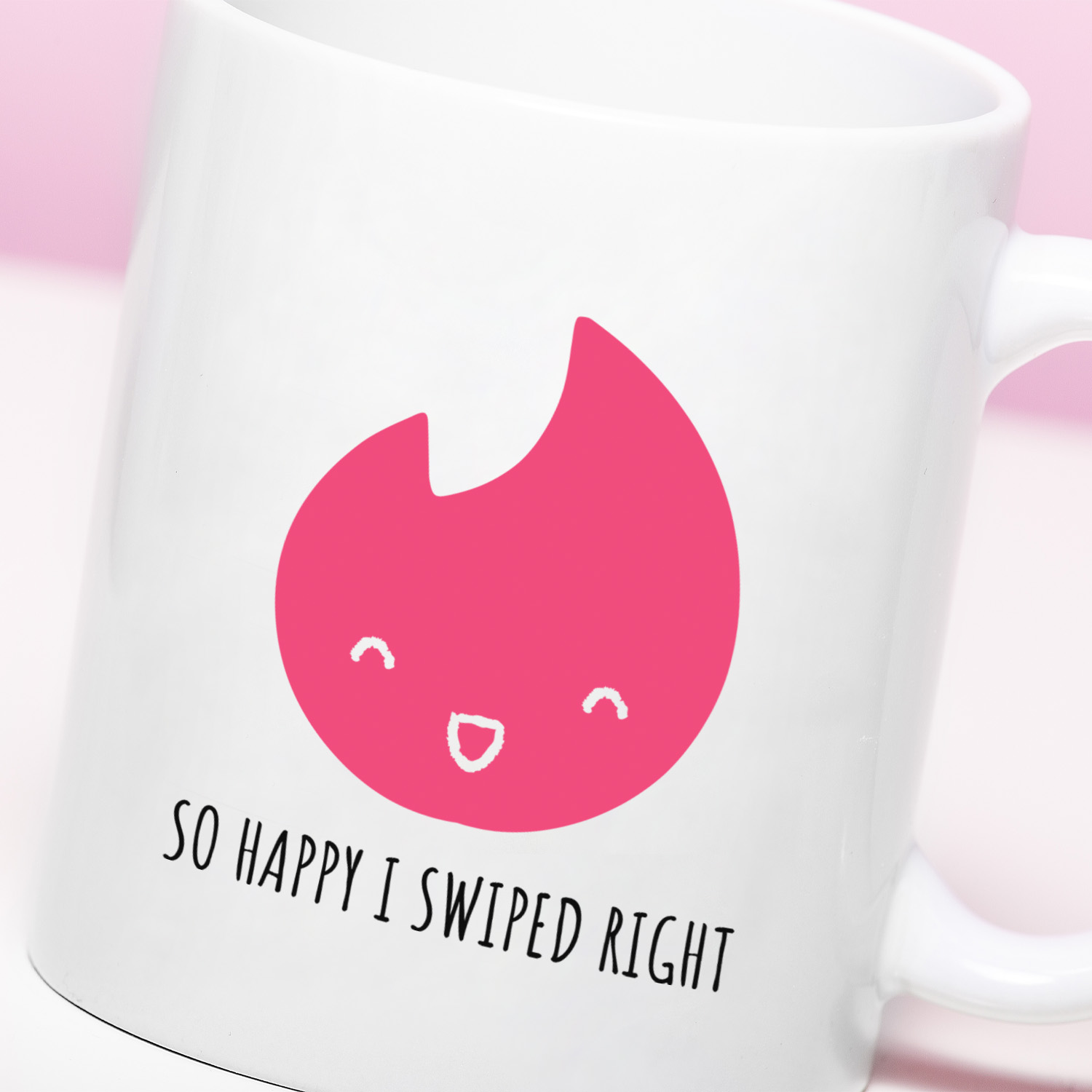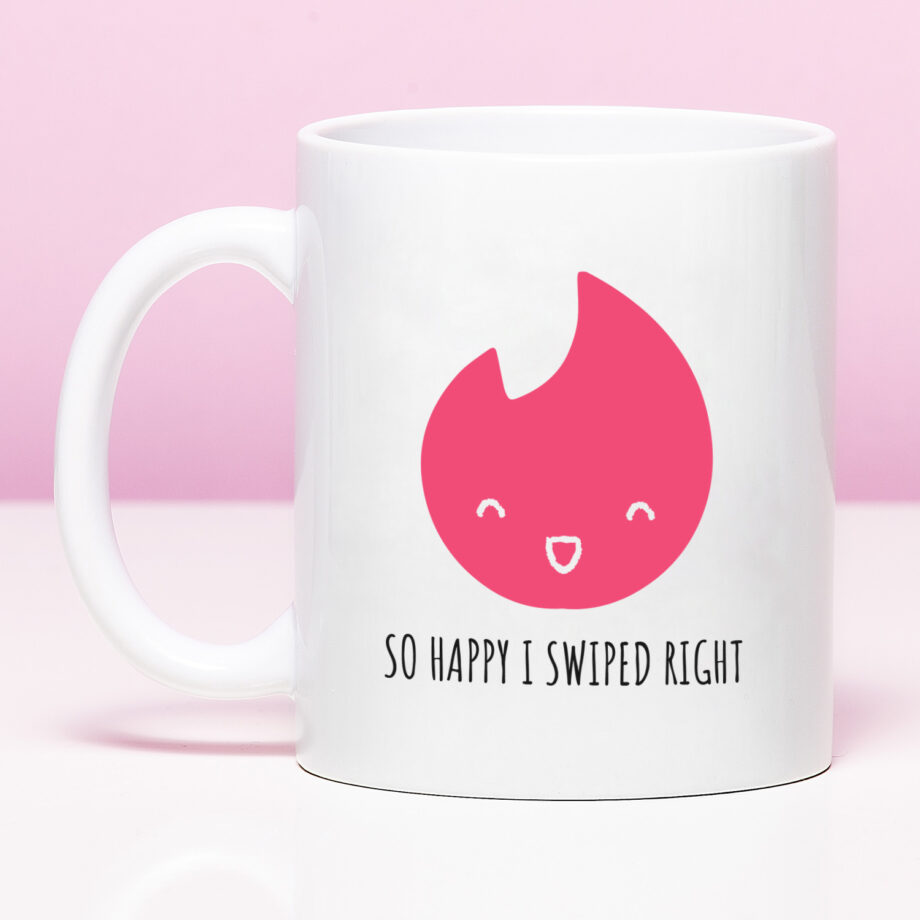 Jouw partner is je beste swipe ooit en dat mag iedereen weten. Geef hem of haar daarom de Mok Happy I Swiped Right cadeau. Een originele beker met het bekende vlammetje van Tinder, maar dan met een lachend gezichtje, en de tekst: So happy I swiped right. Leuk om zomaar aan je partner te geven, maar natuurlijk ook voor Valentijnsdag.