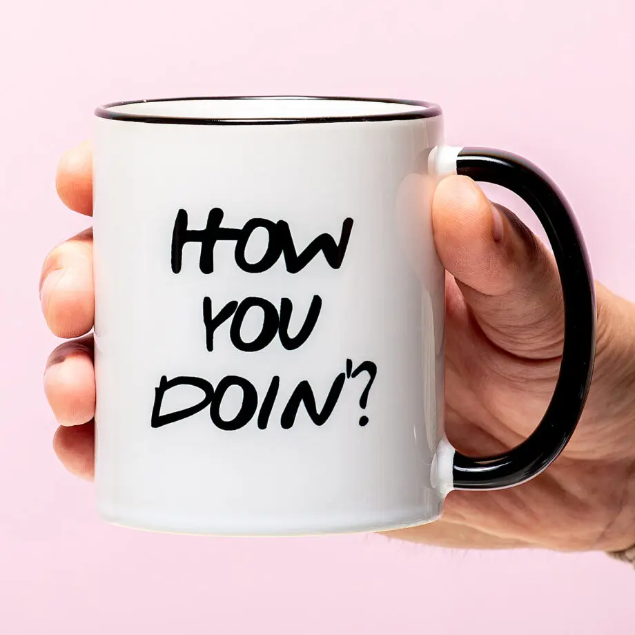 Er zijn maar weinig vrouwen die de charmes van Joey in Friends kunnen weerstaan. Wij begrijpen dat wel: zijn knappe kop en onhandige charme in combinatie met zijn bekendste vraag laat ons ook smelten. De Mok How You Doinโ is er speciaal voor alle mensen die in katzwijm vallen als ze weer eens een Friends marathon houden. Het perfecte cadeau voor jou en je vriendinnen!