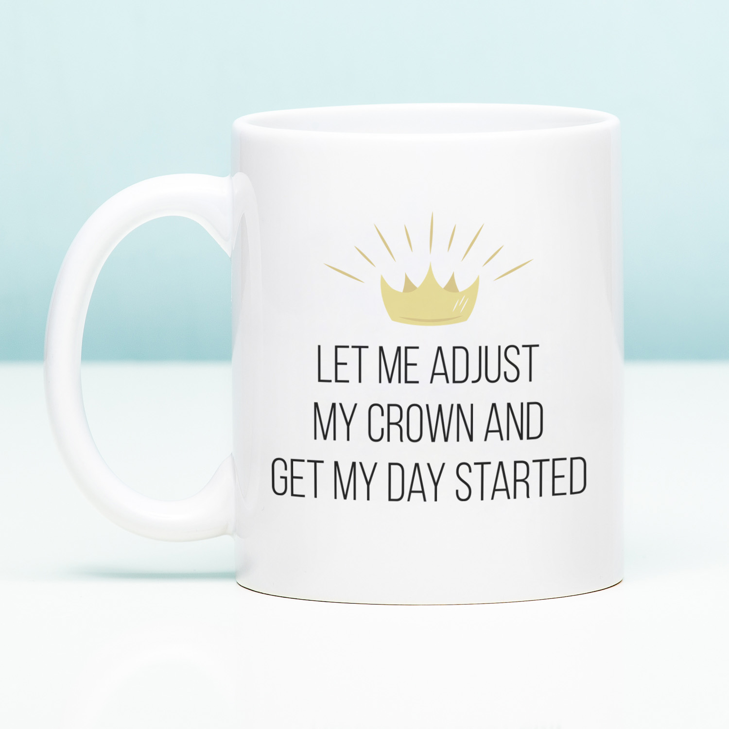 - Met een kroontje en de tekst: Let me adjust my crown and get my day started