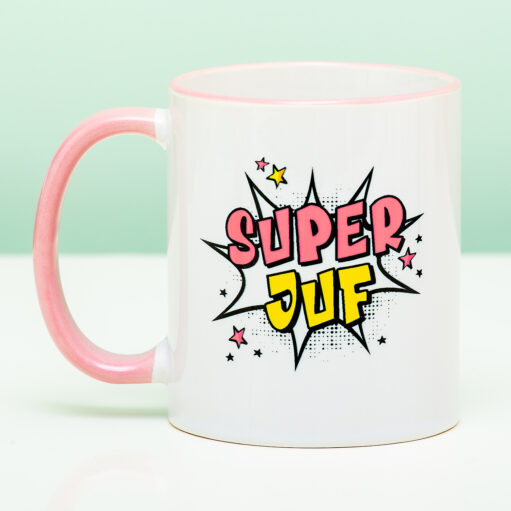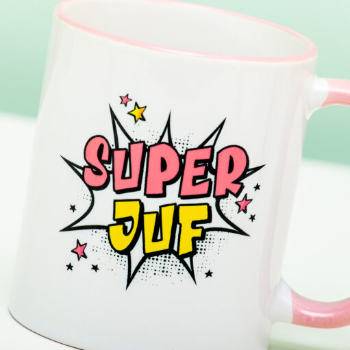Aan het eind van het schooljaar is het er weer tijd voor: bedankjes kopen voor de juf of meester van je kind. De Mok Super juf is een leuk en praktisch cadeau voor iedereen die dank je wel wil zeggen. Op de beker staat Super Juf in vrolijke cartoonstijl.