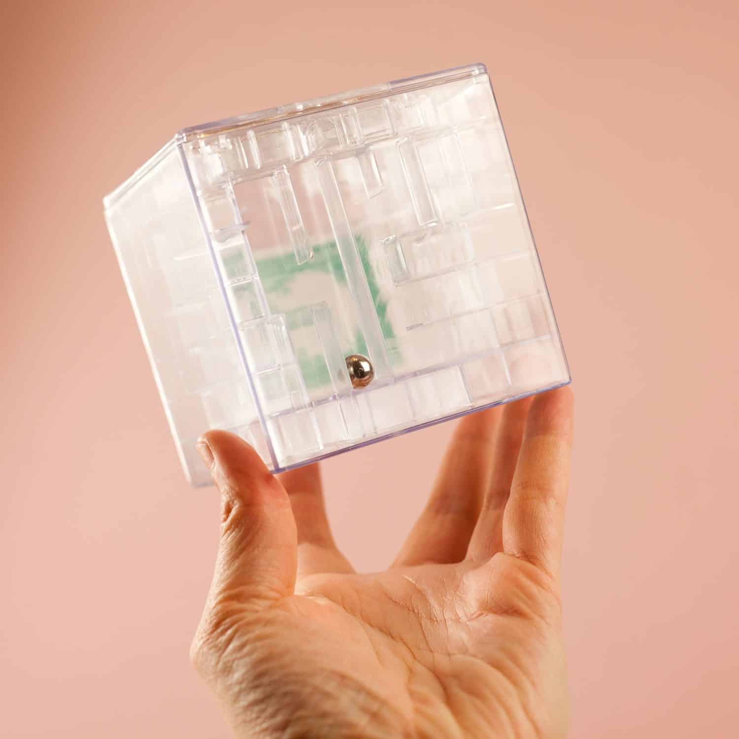 Money Maze geldpuzzel. Spaarpot in de vorm van een doolhof. Deze doolhof spaarpot is gemaakt van transparant kunststof. Voordat je de doolhof puzzel kunt openen, moet je het balletje door het doolhof leiden. Lastig te openen; gevorderde puzzelaars doen er ongeveer een minuut over. Beginnende puzzelaars moeten langer puzzelen voor ze de puzzel spaarpot kunnen openen. De money maze geld puzzel is heel geschikt voor mensen die je niet gewoon geld in een envelop wilt geven, zoals bij een verjaardag of bruiloft. Afmeting: 9 x 9 centimeter. Gewicht: 22 gram.