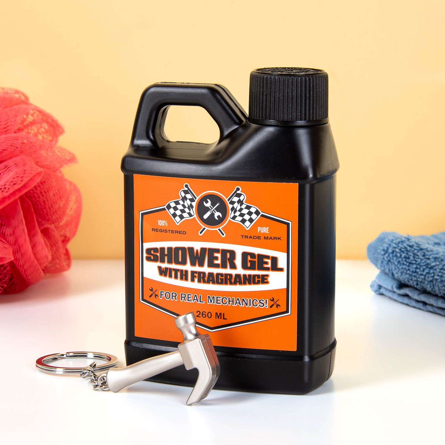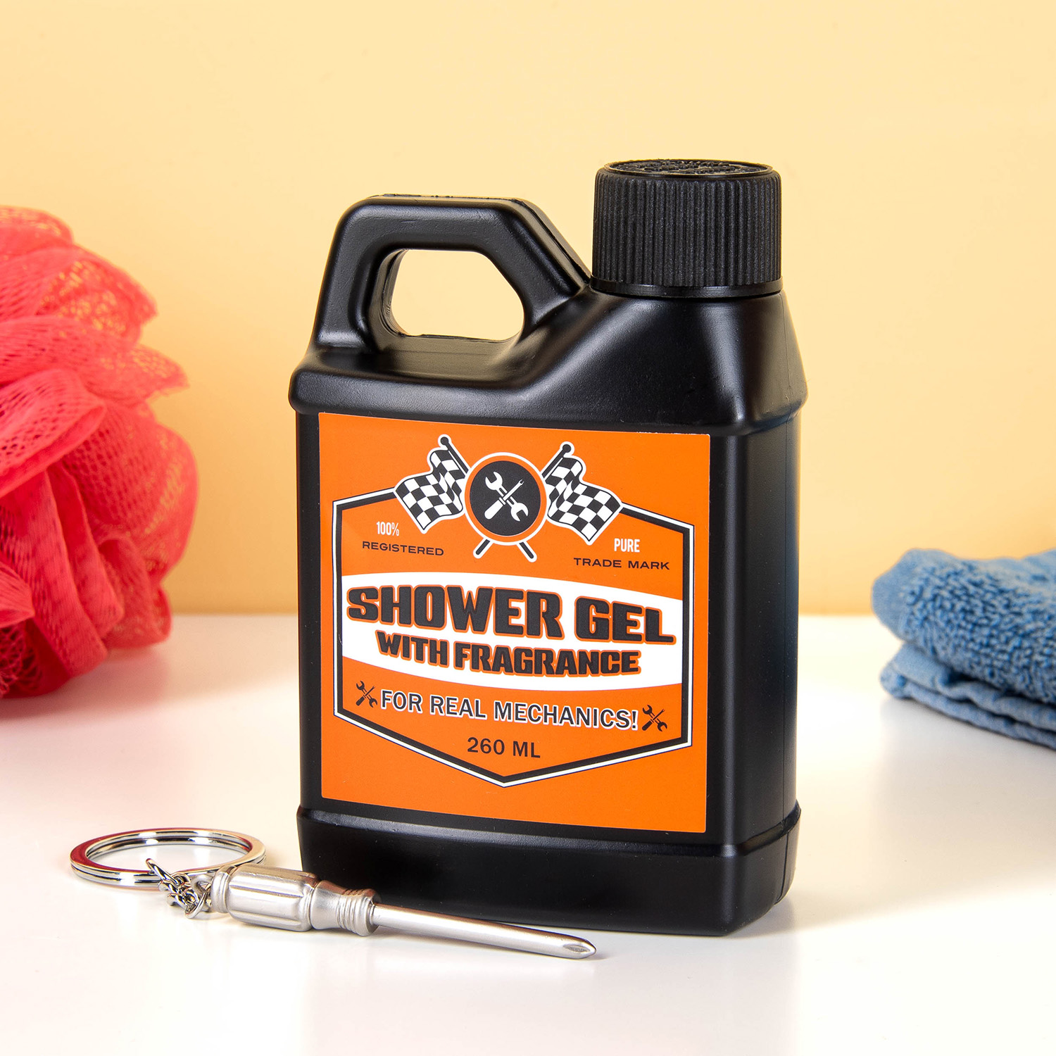 Start je dag met de Motorolie douchegel. Grappig verpakt in een jerrycan, met een originele sleutelhanger met miniatuur-gereedschap. Leuk als cadeau!