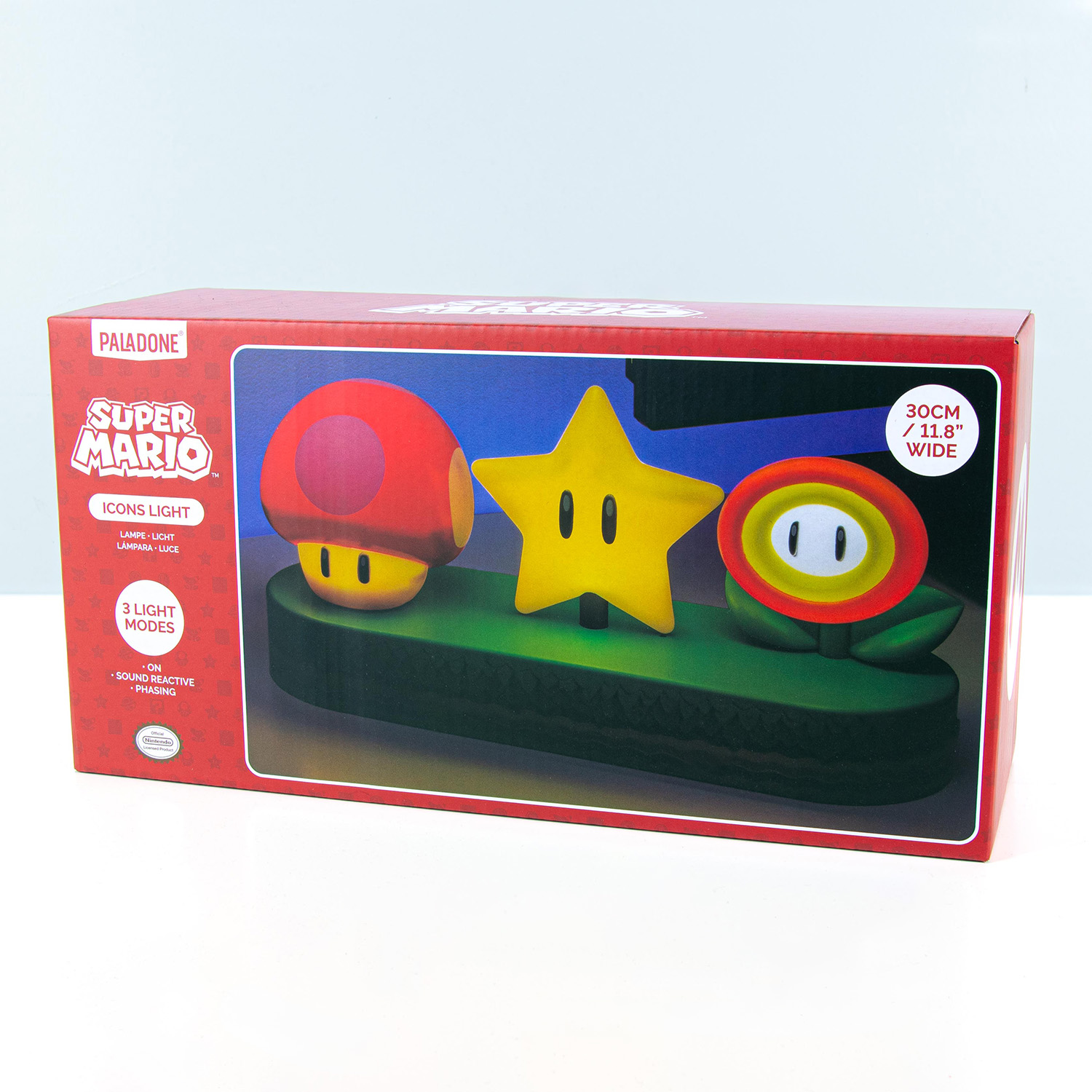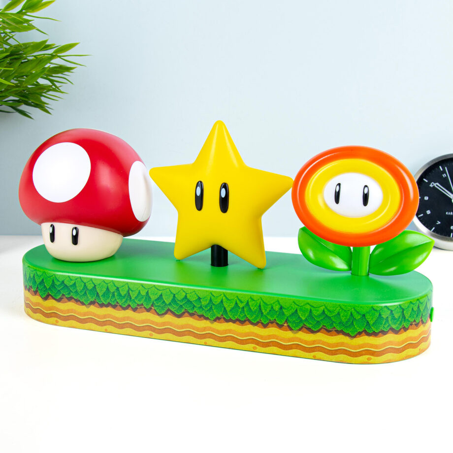 De Super Mario Bros Icons lamp van Nintendo is er een voor fans van de game en voor mensen die lekker nostalgisch worden als ze deze iconen zien. De Super Mushroom, Fire Flower en Super Star: ze zijn er allemaal. De lamp heeft drie lichtstanden: hij kan bijvoorbeeld continu branden of op muziek reageren. Met deze lamp breng je je kamer helemaal in game sferen.