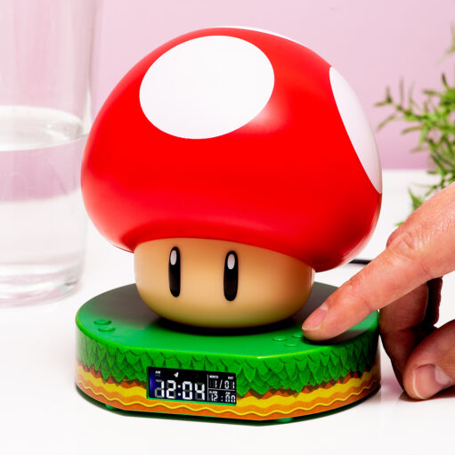 Begin je dag goed door wakker te worden met de Super Mario Bros Super Mushroom wekker van Nintendo. Als je deze wekker ziet, ben je direct gemotiveerd om een hoger niveau te bereiken. Of om in elk geval je nest uit te komen. De wekker speelt officiële Super Mushroom geluiden en heeft natuurlijk ook een snoozefunctie.