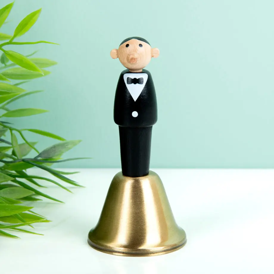 Als je het eten op tafel hebt staan, wil je het liefst dat iedereen meteen aanschuift zonder dat je moet gaan schreeuwen. Met de Ober etenstijd bel van Kikkerland laat je alle eters op een vriendelijke manier weten dat ze aan tafel verwacht worden zonder dat je je stem hoeft te verheffen. Heel erg handig ook als je kinderen een zolderkamer hebben. De bel is gemaakt van messing en handbeschilderd beukenhout en ziet eruit als een chique ober. Naast het praktische nut van een etensbel is deze ober ook een unieke blikvanger op tafel.