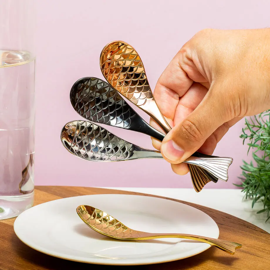 Koffie, thee of yoghurt: de Oceaan lepels (set van 4) van Winkee voelen zich overal als een vis in het water. Deze grappige lepels zien eruit als een vis, waarvan de staart het handvat is. Gebruik de lepels voor het dessert of gewoon in je thee: het is ook een goede ijsbreker als een date een kop koffie komt drinken. Deze unieke lepels toveren een glimlach op het gezicht van iedereen die ze ziet.