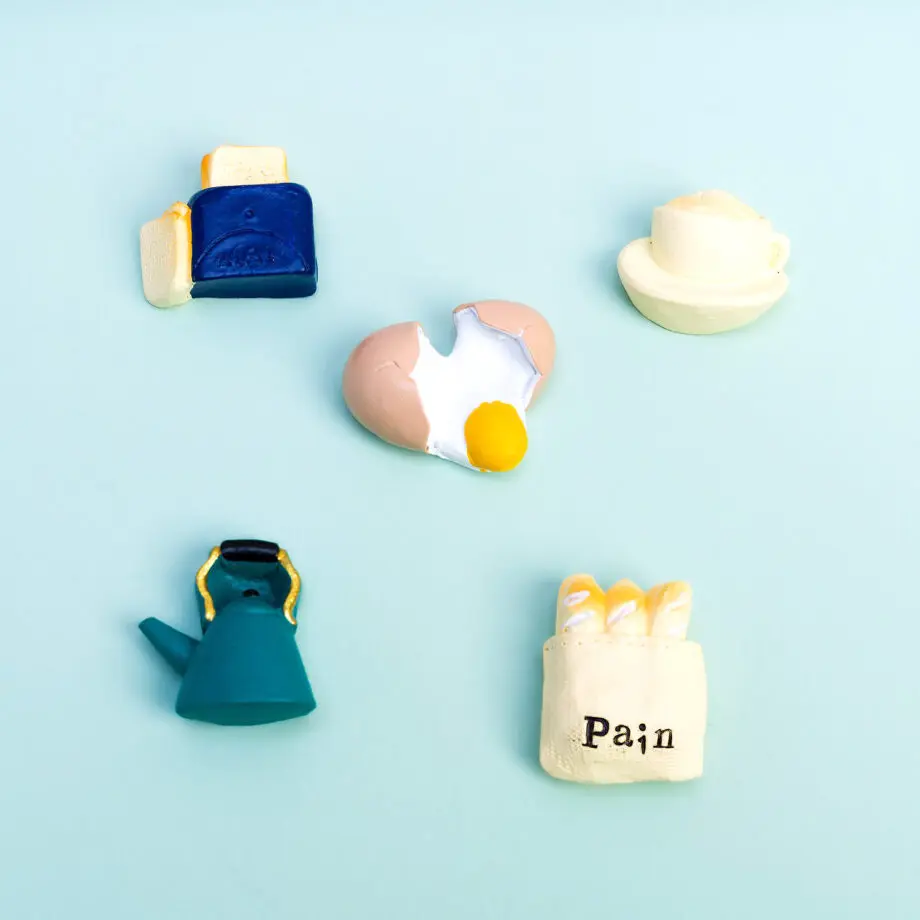 - Set van 5 magneten met ontbijtthema
