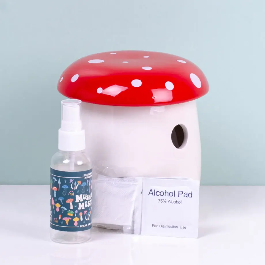 - Inhoud: keramische paddenstoel, bemister, antibacteriรซle doekjes en instructies