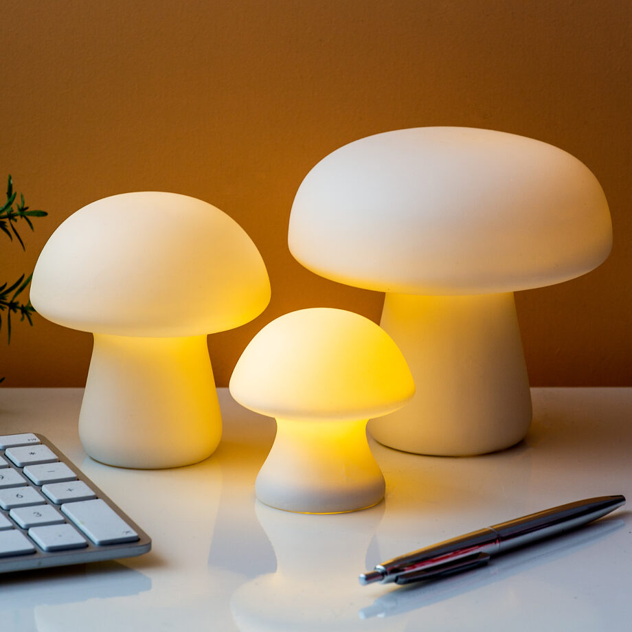 Loop jij graag door het bos? Ben je een type dat liever buiten is dan binnen? Met de Paddenstoel lamp van Kikkerland haal jij de natuur in huis. Deze mooie lamp van porselein ziet eruit als een paddenstoel. Hij is geschikt voor elk donker hoekje in je huis, want hij werkt op batterijen. Zet hem bijvoorbeeld in de vensterbank, op je nachtkastje of gezellig in de boekenkast.