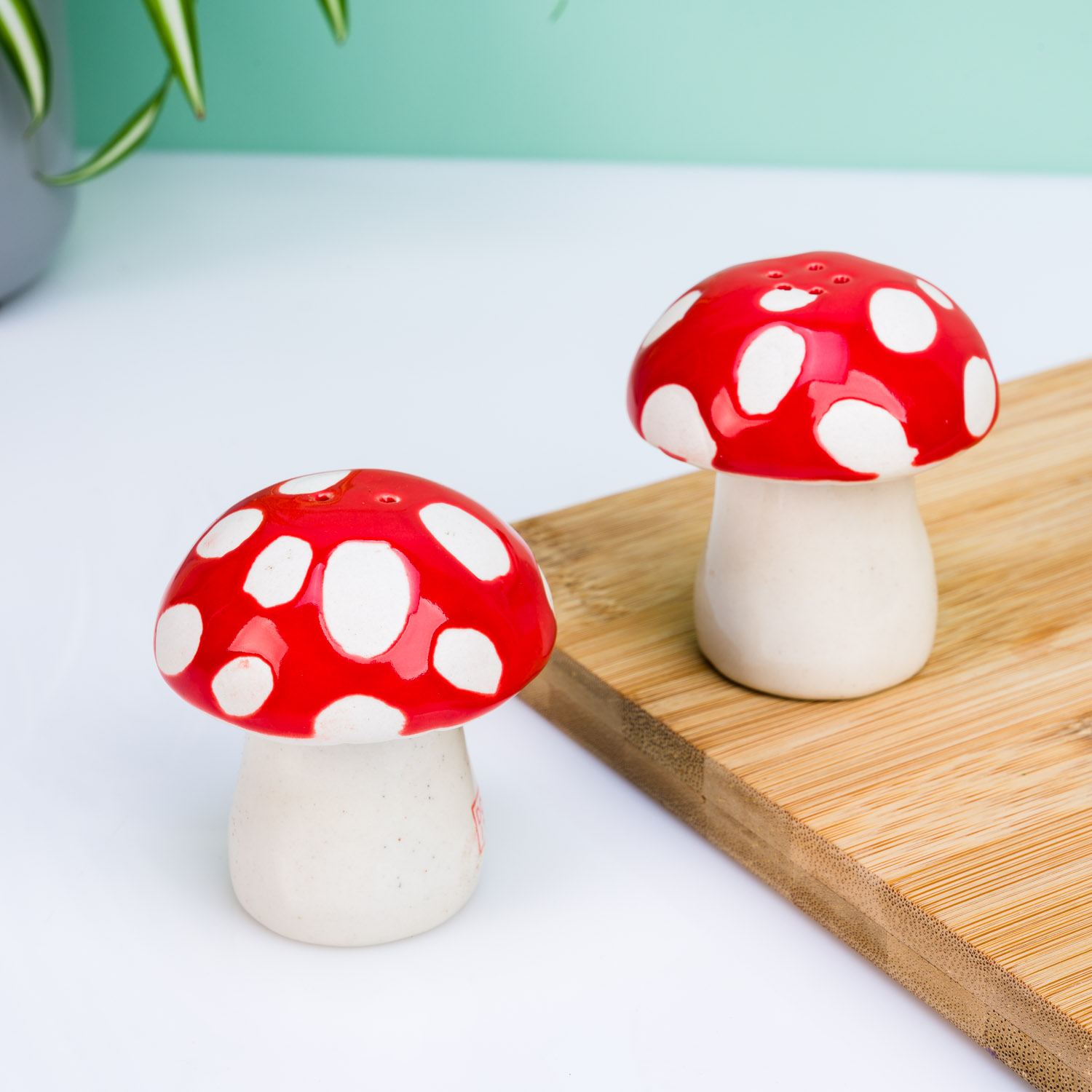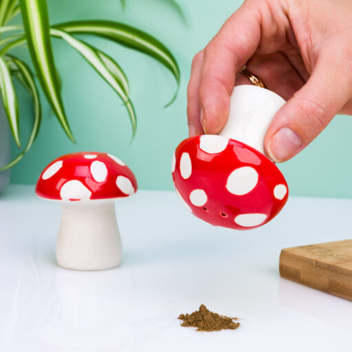 Het was een traditioneel cadeautje voor een bruidspaar vroeger: een peper- en zoutstel. En met het Paddenstoel peper- en zoutstel van DOIY is het nog steeds leuk om een pasgetrouwd stel te verrassen. Dit vrolijke setje is namelijk leuk voor elk huishouden. De paddenstoelen zijn gemaakt van keramiek en vrolijken elke eettafel op. In dit setje van twee heeft de ene paddenstoel drie gaatjes en de andere twee gaatjes.
