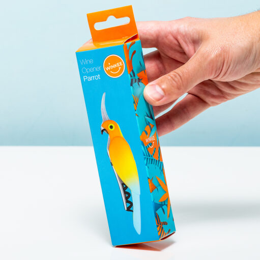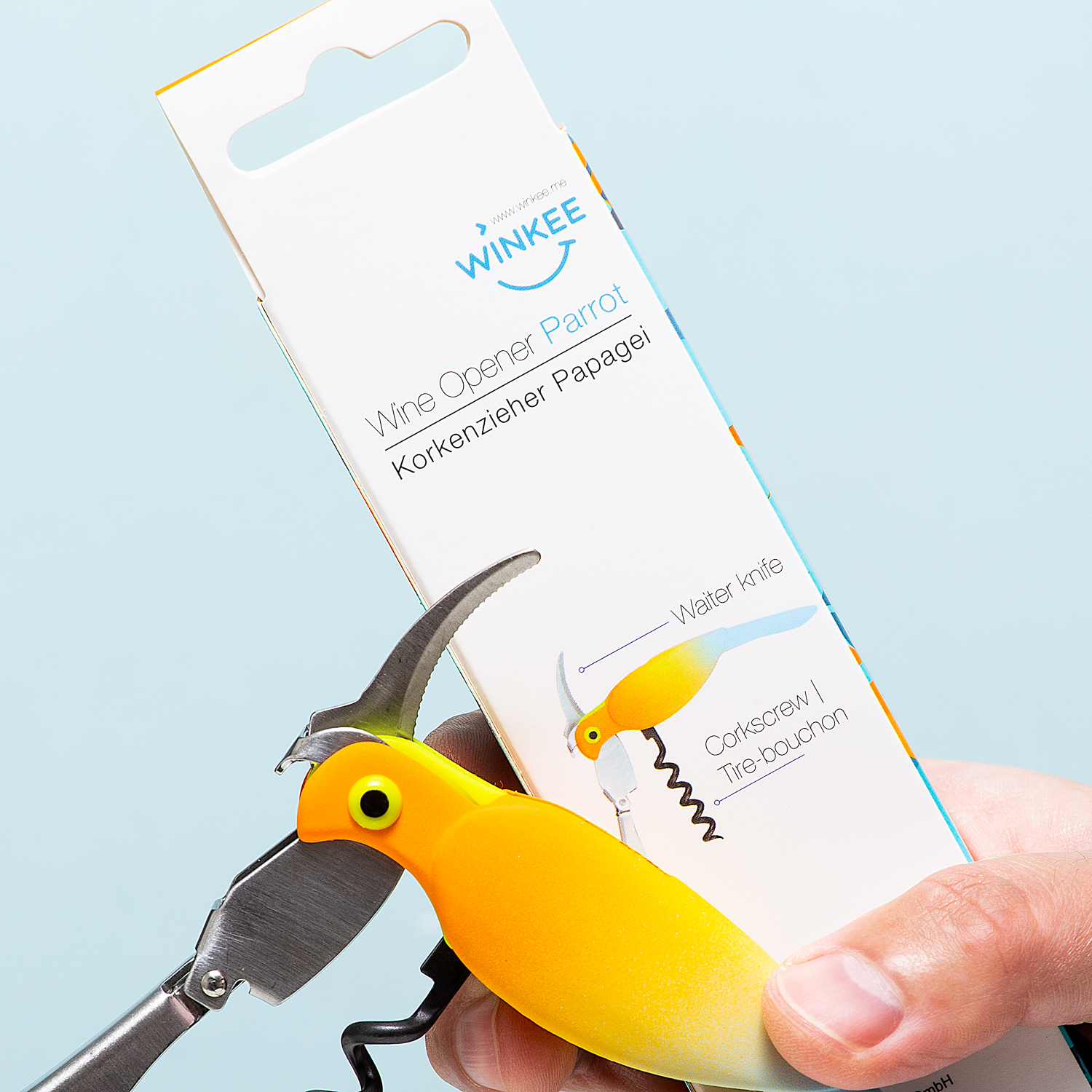 Een cadeautje nodig voor een housewarming? Of voor iemand die voor het eerst op zichzelf gaat wonen? Verras hem of haar met de grappige Papegaai kurkentrekker van Winkee. Deze kleurrijke vogel zal de besteklade opvrolijken en het ontkurken van een fles wijn wordt een eitje. Daarnaast heeft de papegaai ook een flesopener.