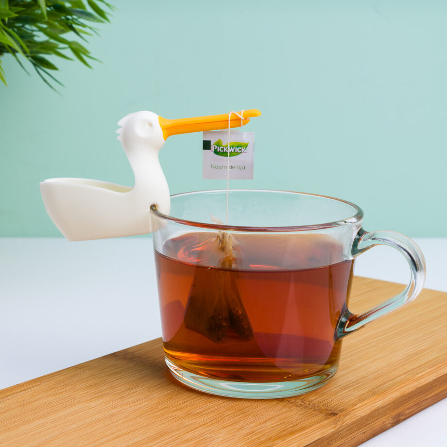 Ben je dol op lekker theedrinken met je vriendinnen? Verras hen de volgende keer met de grappige Pelicup theezakjeshouder van Peleg Design! Dit originele theeaccessoire is heel praktisch. Je kunt hem op verschillende manieren gebruiken: bijvoorbeeld als houder voor je natte theezakje. Daarnaast kun je het touwtje van het zakje om zijn snavel binden, als de thee nog moet trekken. En natuurlijk is het bakje op zijn rug ook heel geschikt voor koekjes!